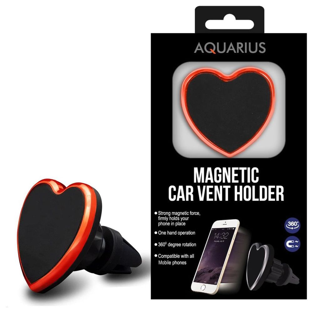 Aquarius Magnetic Heart Phone Car Mount, Firm Grip, Red: Universal, 360° Rotation, Compatible with iPhone & Samsung