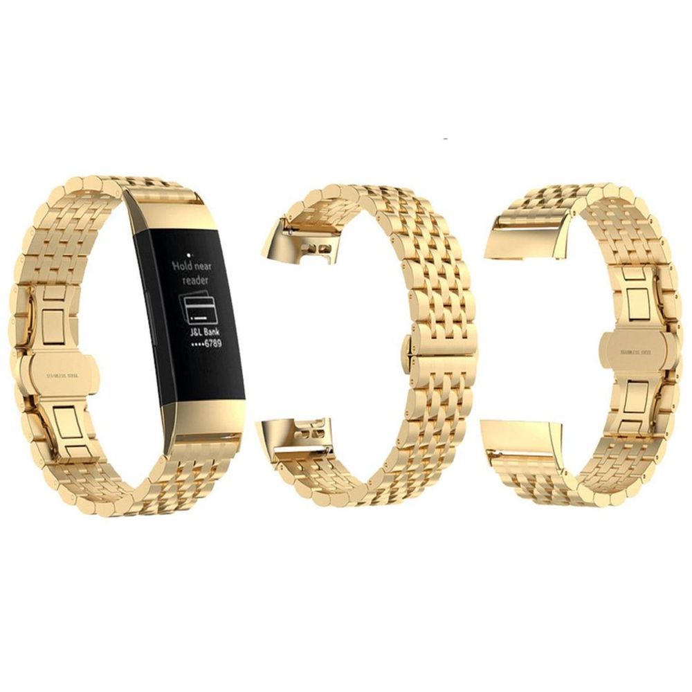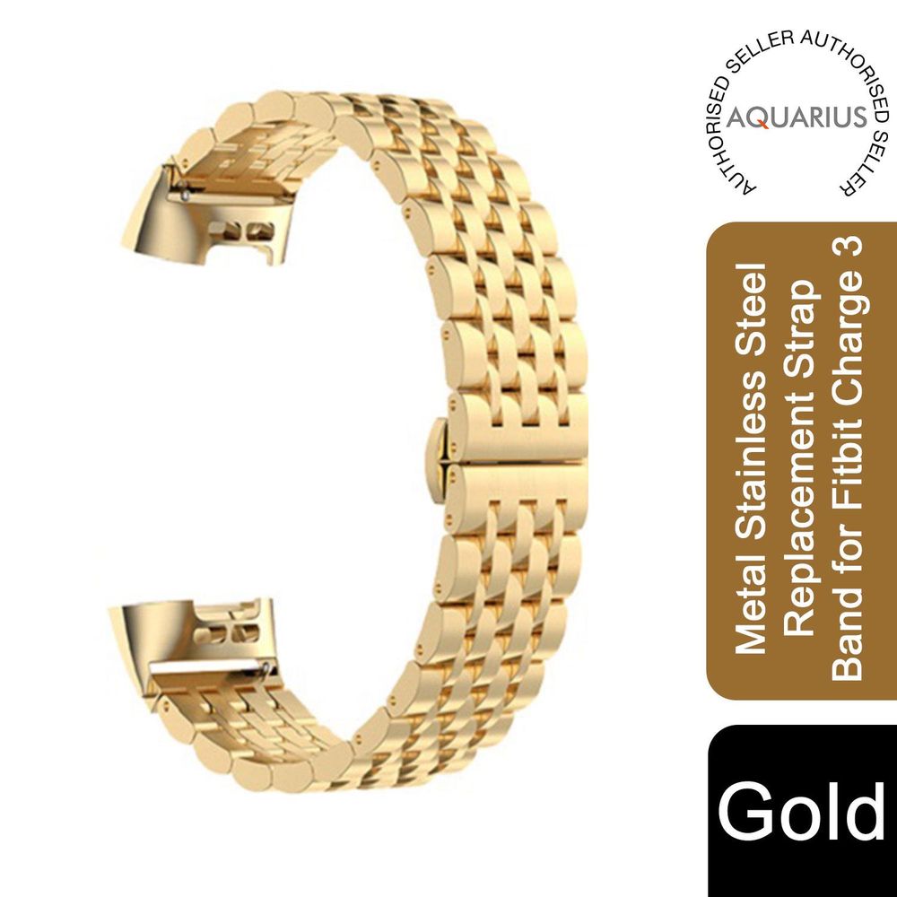 Aquarius Metal Stainless Steel Replacement Strap Band for Fitbit Charge 3, Gold