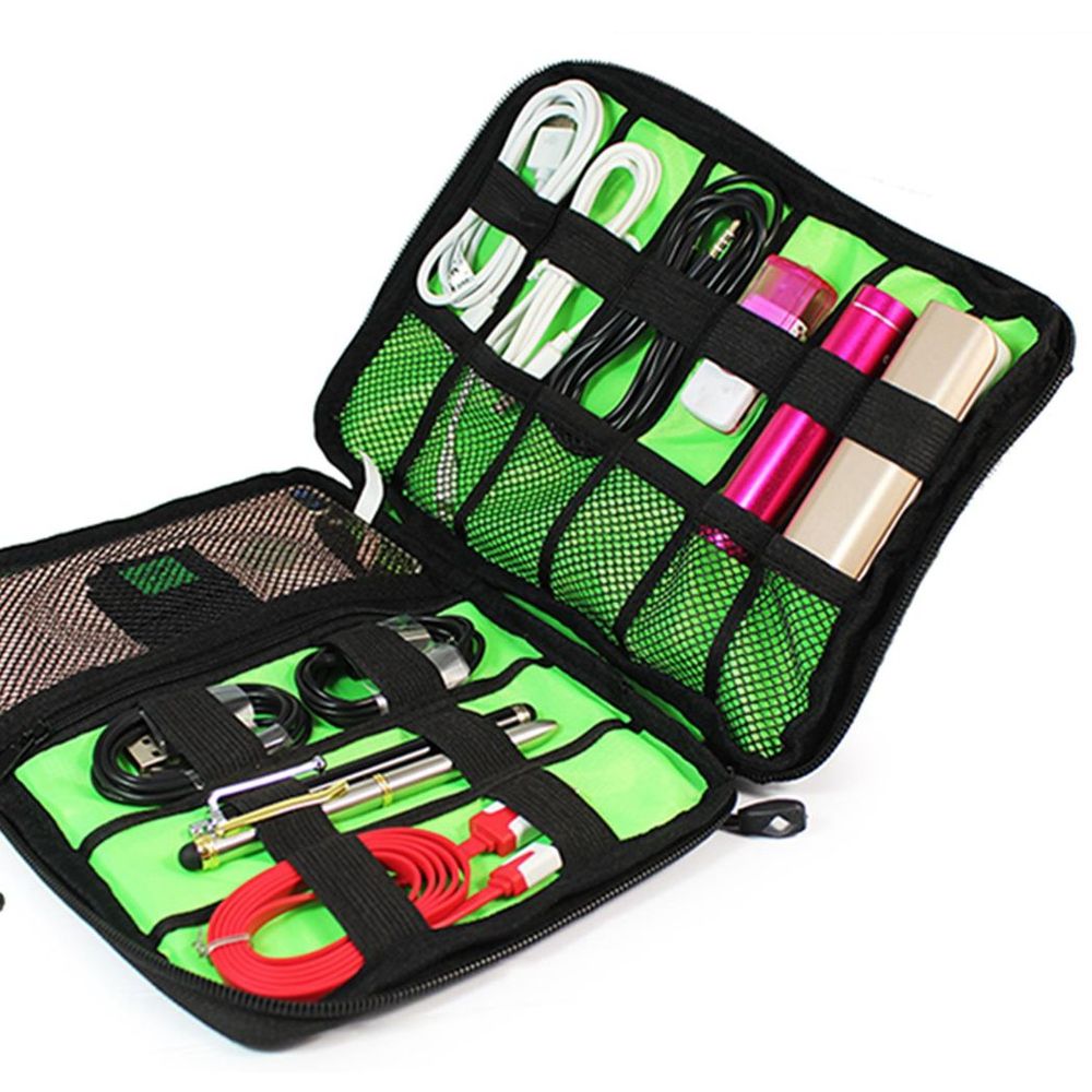 Product Features: - Durable and waterproof nylon material - Well-padded semi-flexible covers for extra protection - 12 elastic loops for better organization - 6 easy-access mesh pockets - 1 zipper mesh pocket for 2.5-inch hard drive or power bank - 1 SD card slot pocket - Compact size fits into luggage, backpack, or briefcase - Splash water protection for electronics parts and accessories