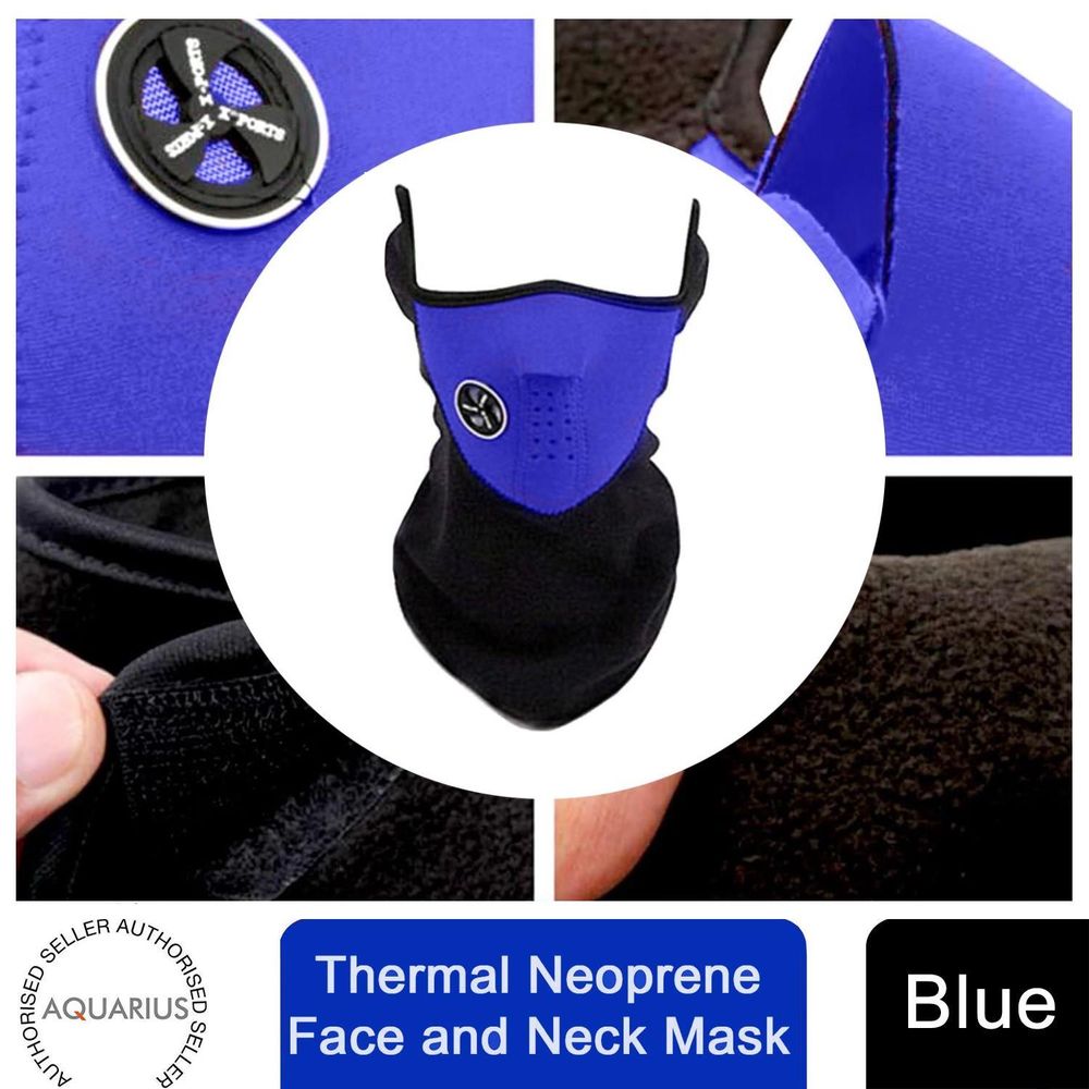 Aquarius Thermal Neoprene Face & Neck Mask - Warm, Breathable, Blue Biker Mask