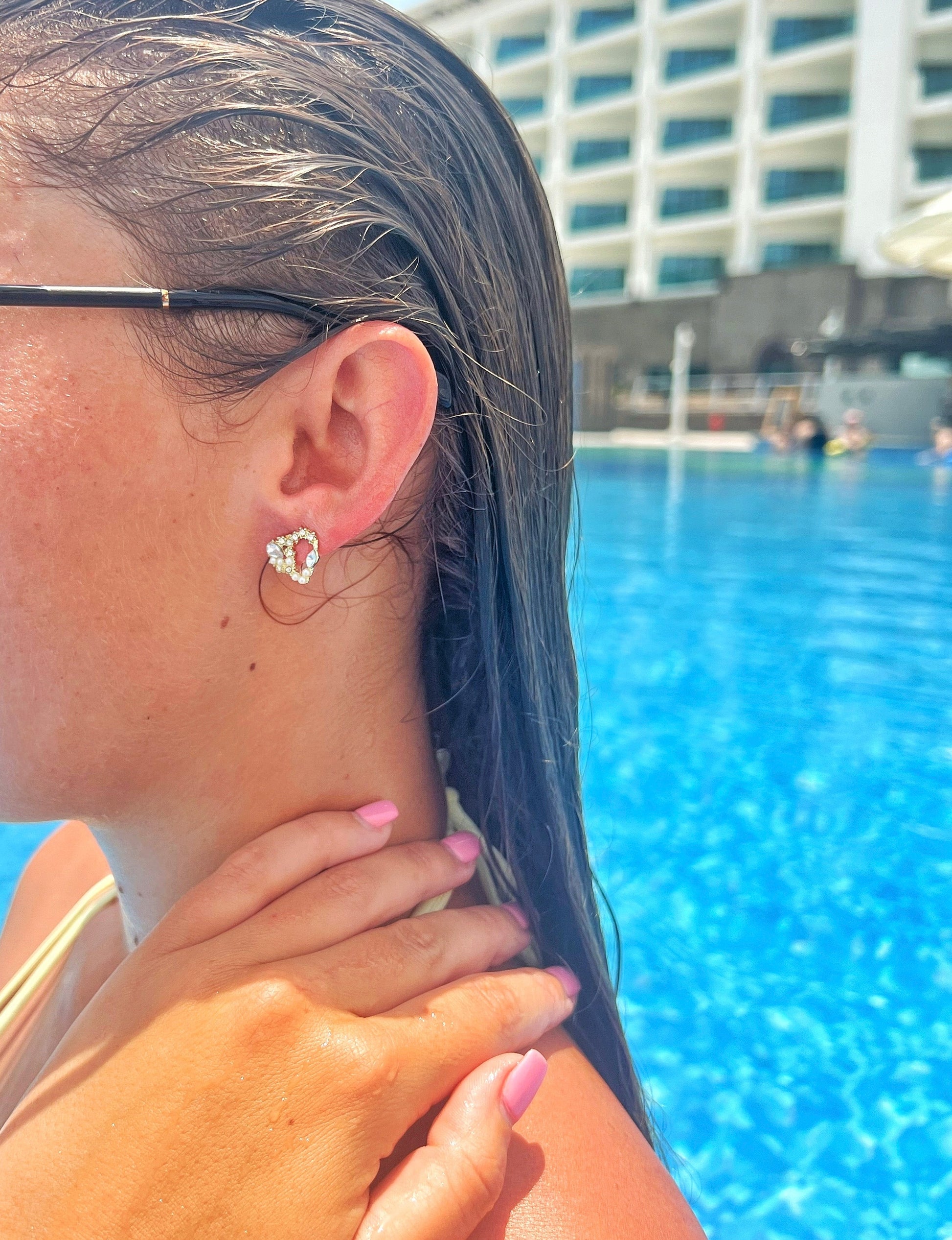 The beautiful Ariana studs feature a delicate heart shaped wreath pretty pearl accents with a gold coloured base.
