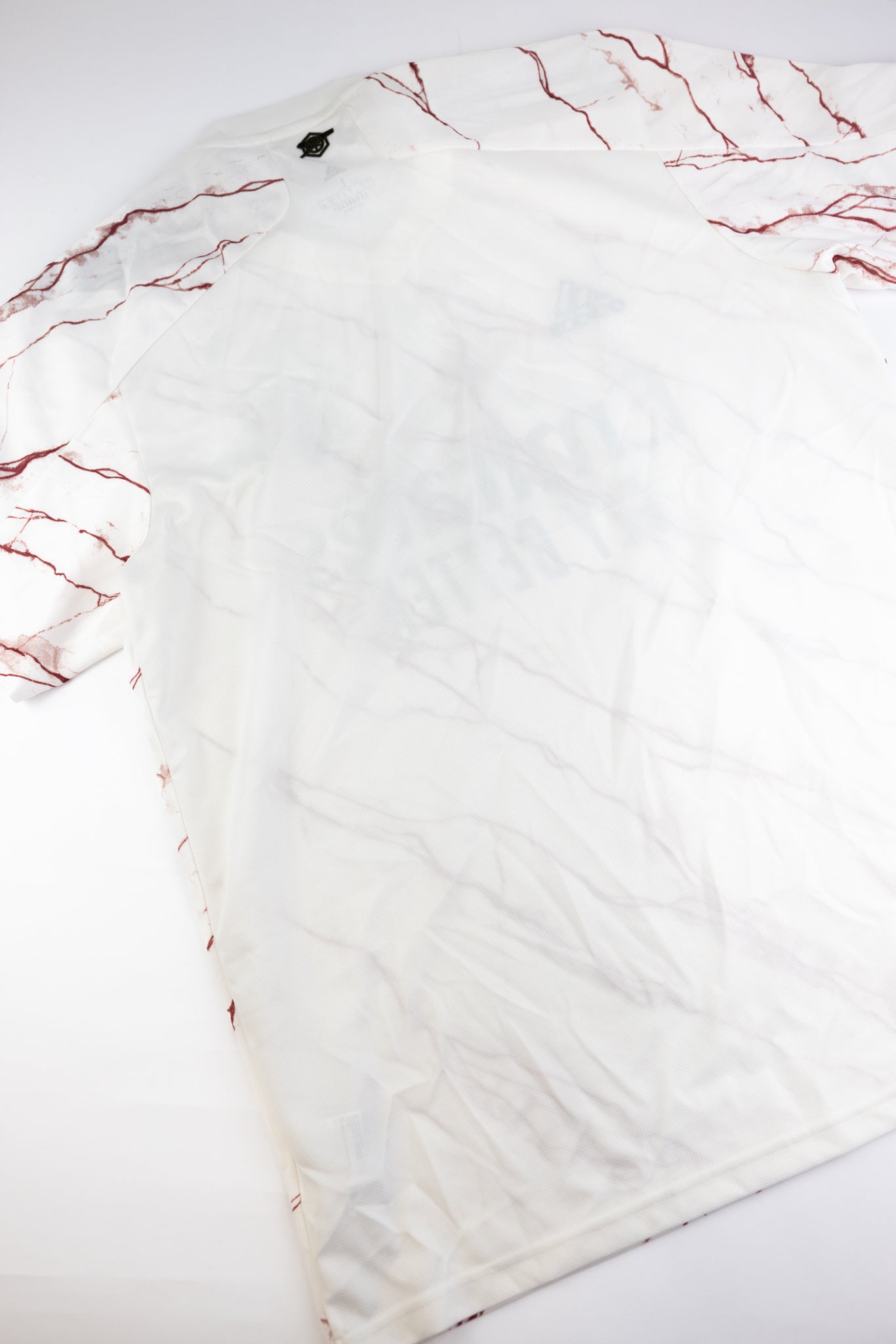 This away kit displays a sophisticated pattern paying homage to the famed marble halls of Highbury. Represents Arsenal's 2020-21 campaign—Mikel Arteta's first complete season at the helm—which concluded with the club securing eighth position in the Premier League standings.