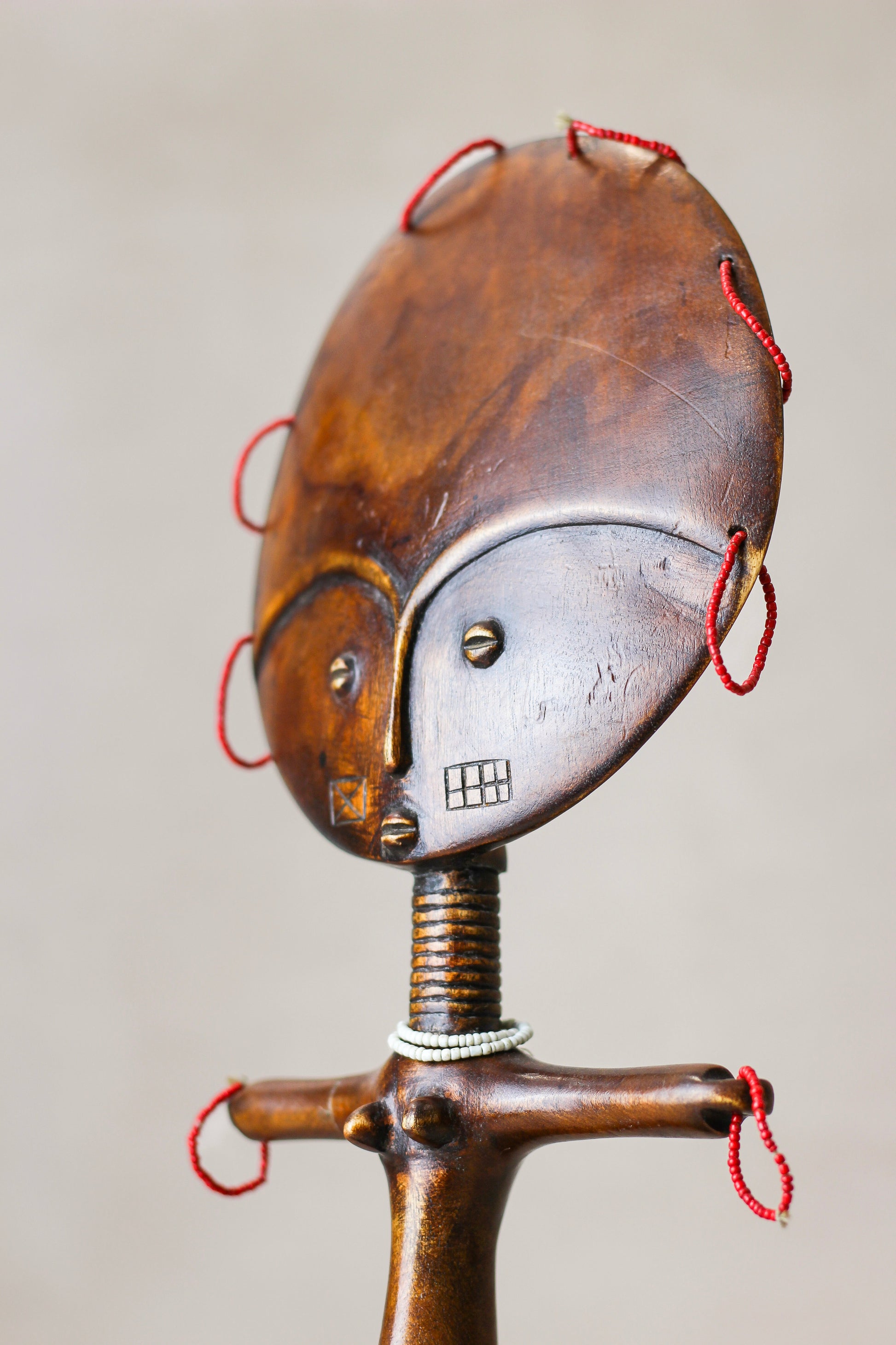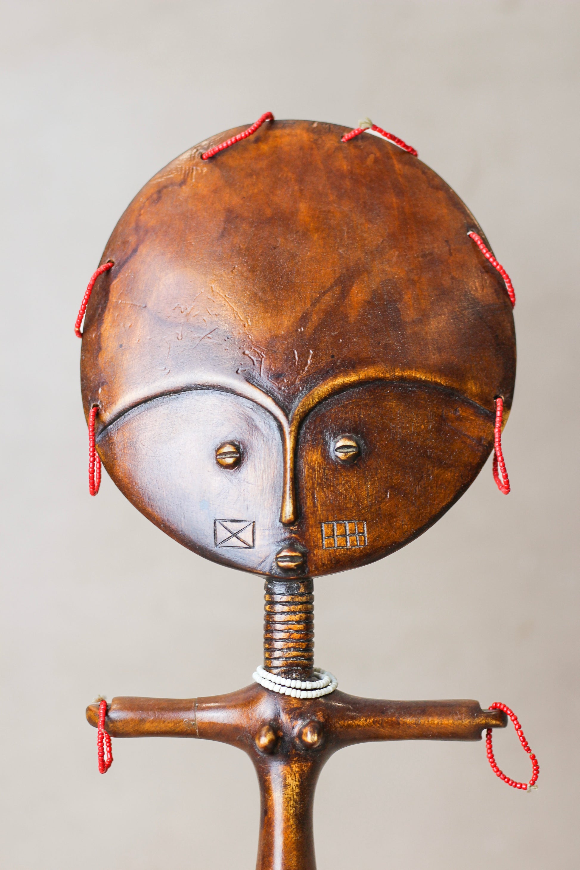 African hand carved Ashanti dolls. The fertility doll originates from Ghana and alongside the Ashanti Stools they are important objects can be found in many other African countries in western Africa. Each piece is slightly different as they are handmade.