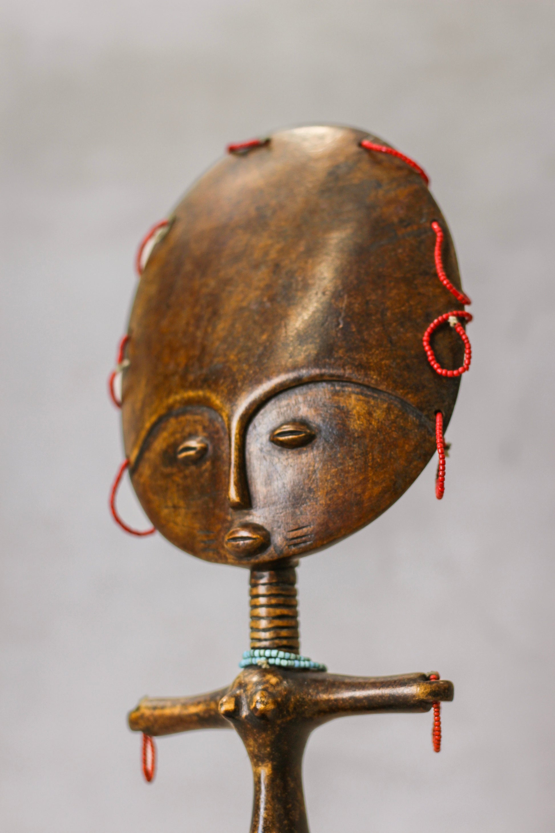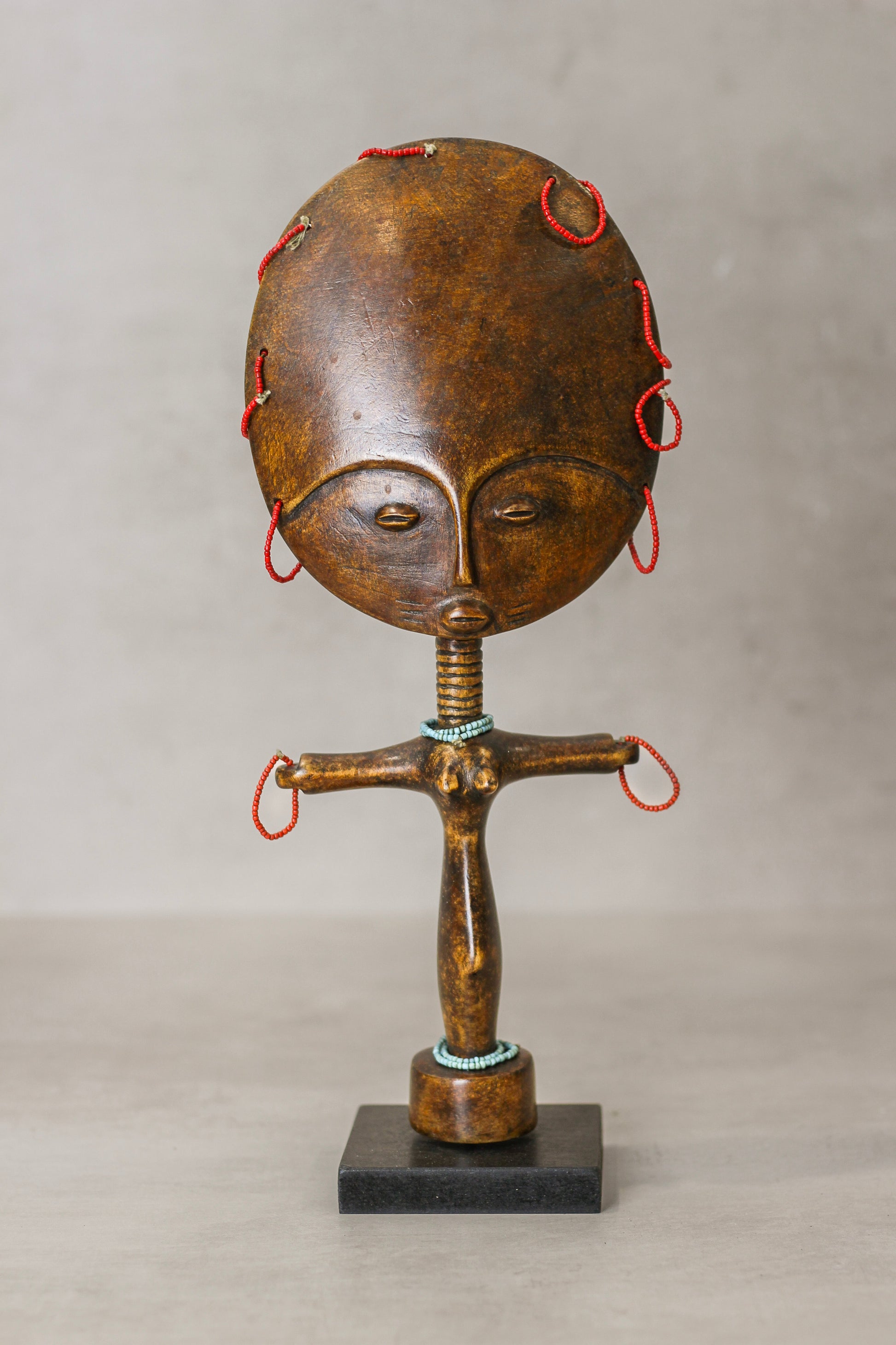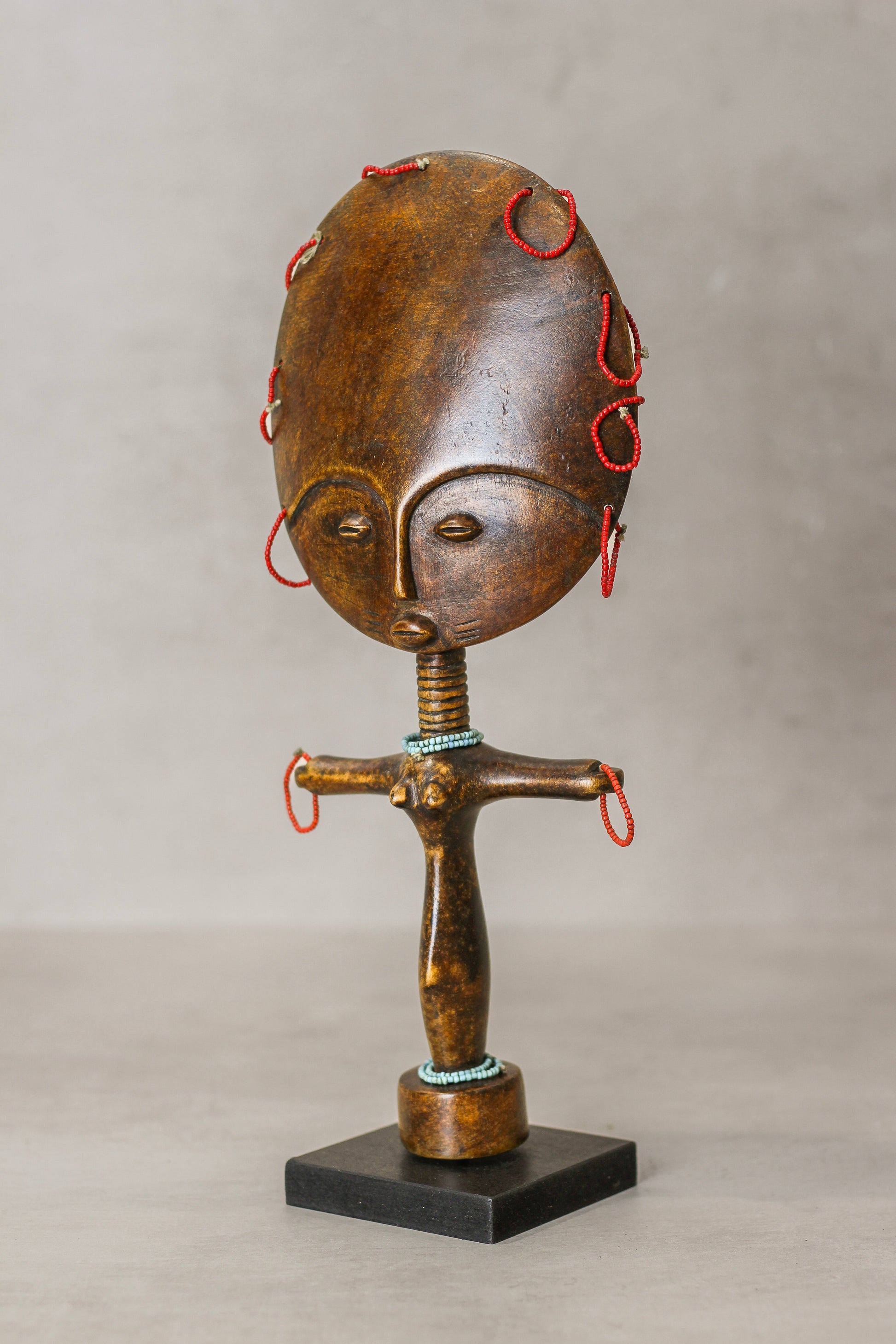 African hand carved Ashanti dolls. The fertility doll originates from Ghana and alongside the Ashanti Stools they are important objects can be found in many other African countries in western Africa. Each piece is slightly different as they are handmade.