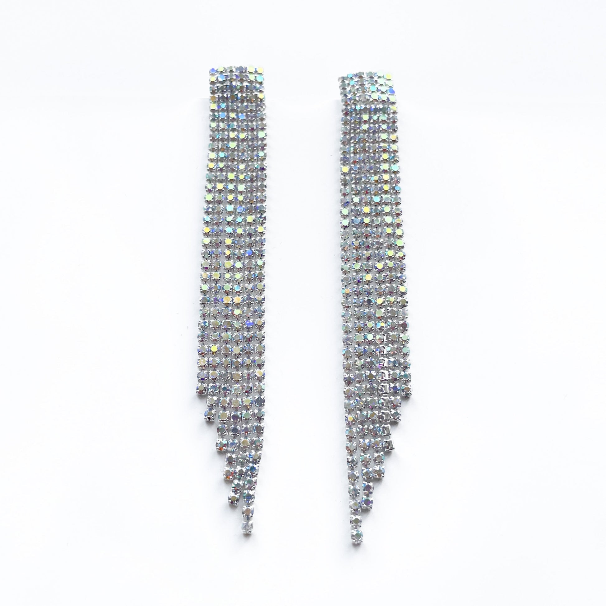 Elevate your evening look with these stunning Aspen Silver Statement Cascade Earrings. Delicate shimmer and shine create a dazzling display of light that is sure to turn heads. Make a bold statement and take risks – you won't regret it!