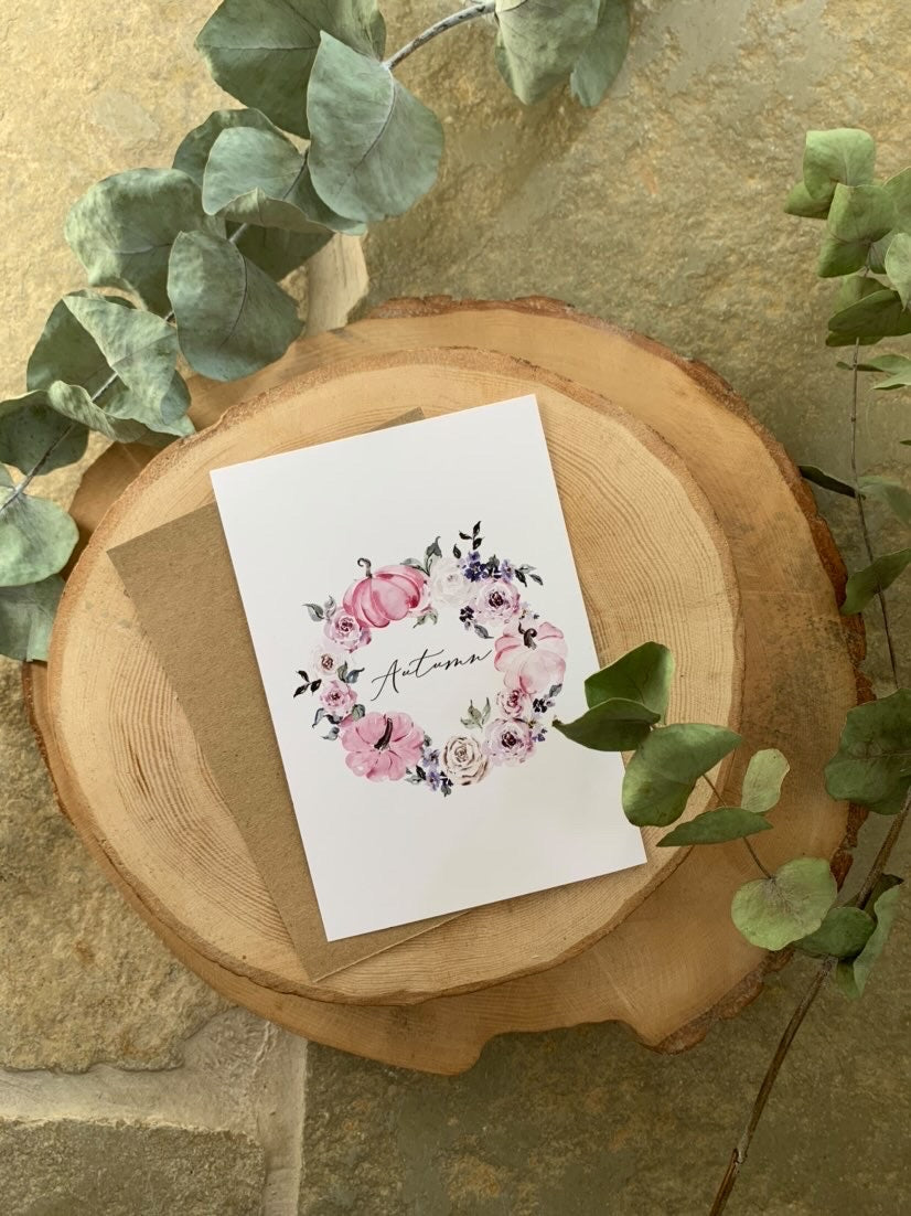 Autumn Pink Pumpkin Wreath Autumn Seasonal Wall Home Decor Print