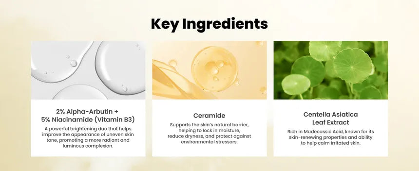 The AXIS-Y Dark Spot Correcting Glow Cream delivers targeted hydration and brightening in a lightweight gel-to-water formula. Enriched with alpha-arbutin, niacinamide, and water-soluble vitamin C, it helps reduce dark spots and even out skin tone. Hero ingredients such as hyaluronic acid, ceramide NP, and 6-peptide complex deeply moisturize, strengthen the skin barrier, and support healthy skin resilience. Calming plant extracts including centella asiatica, heartleaf, and sea buckthorn berry soothe irritation while maintaining skin balance. Free from artificial colorants, mineral oils, fragrances, and parabens, this cream is gentle enough for sensitive skin.