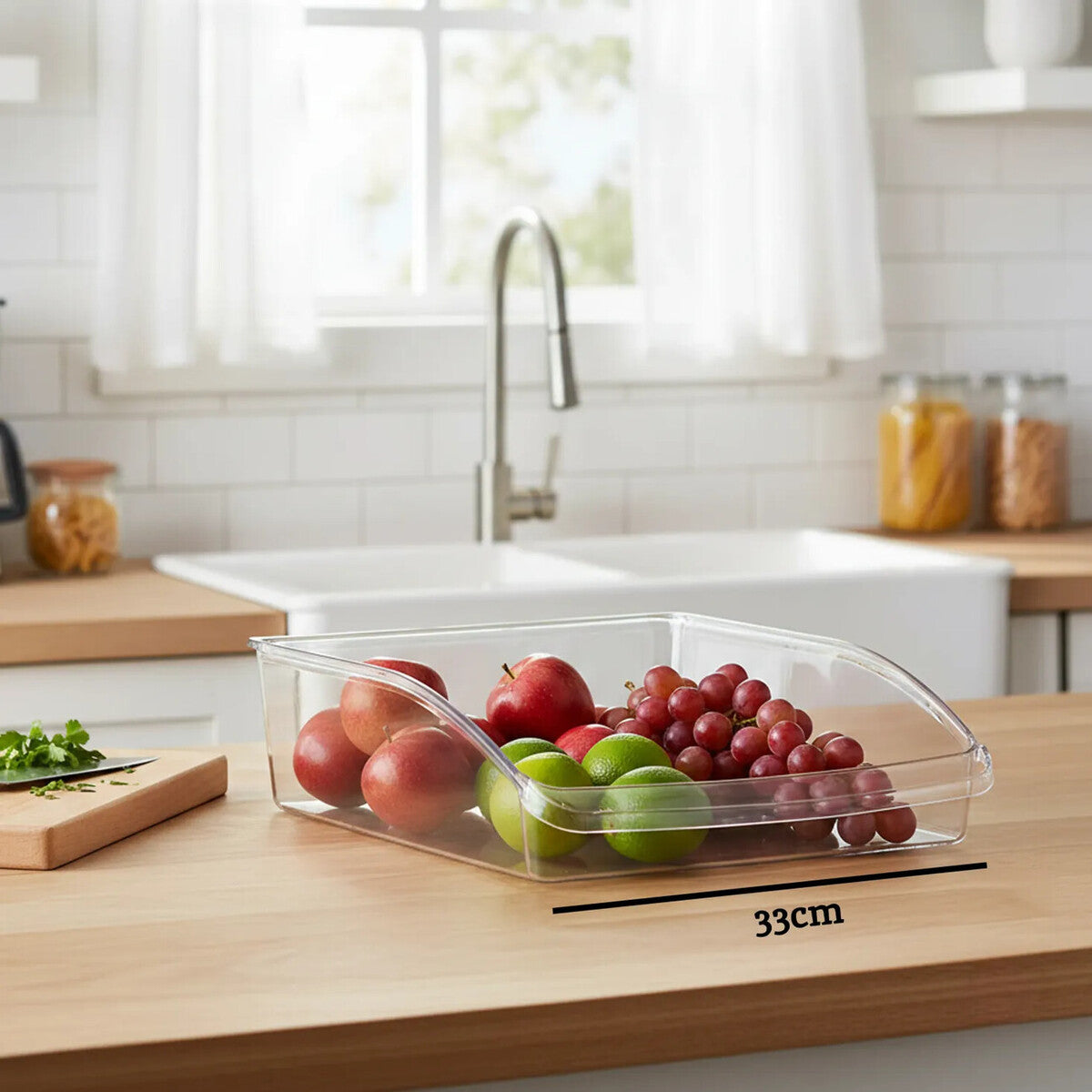 - Large clear fridge organiser designed for spacious shelves and pantry zones