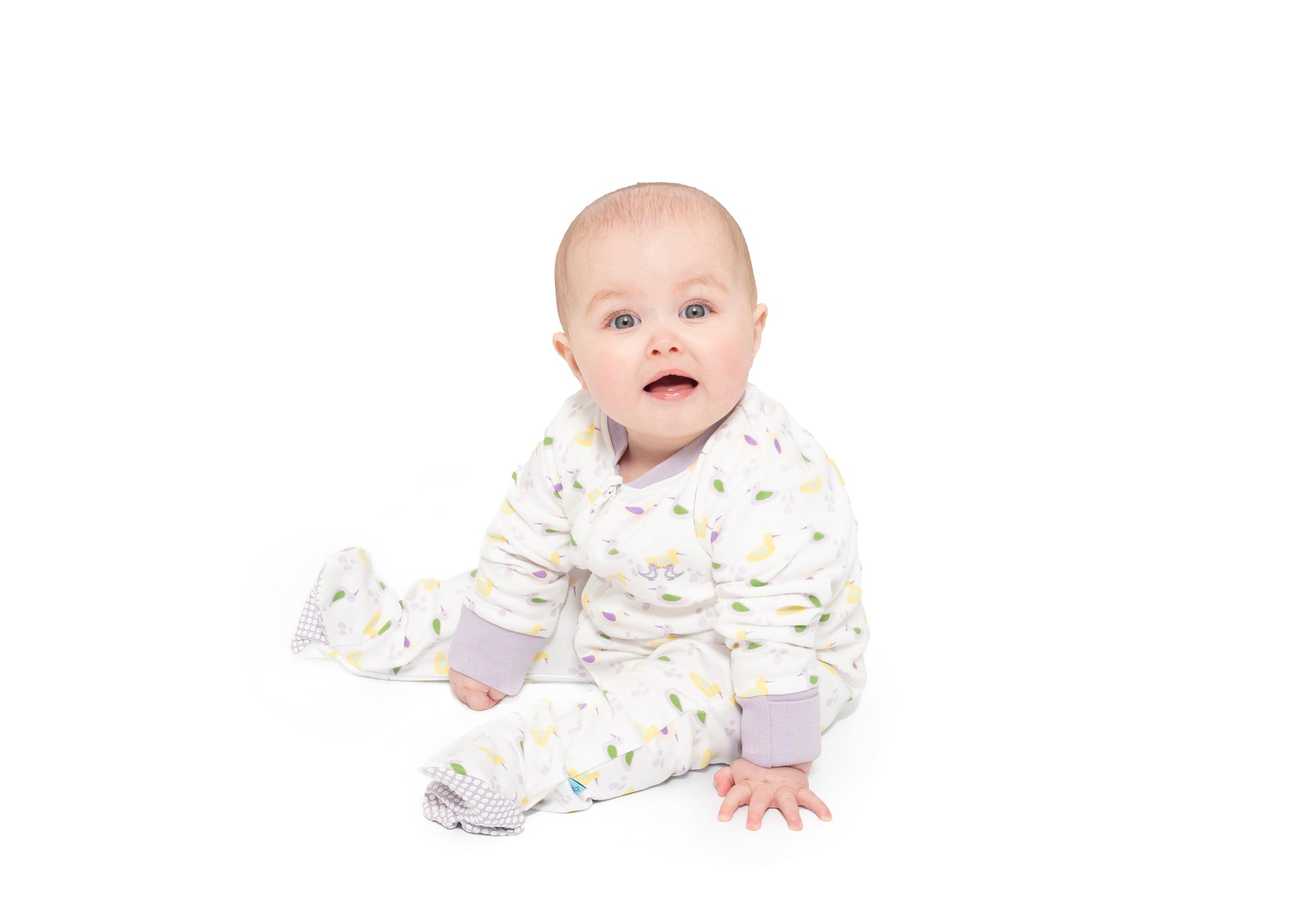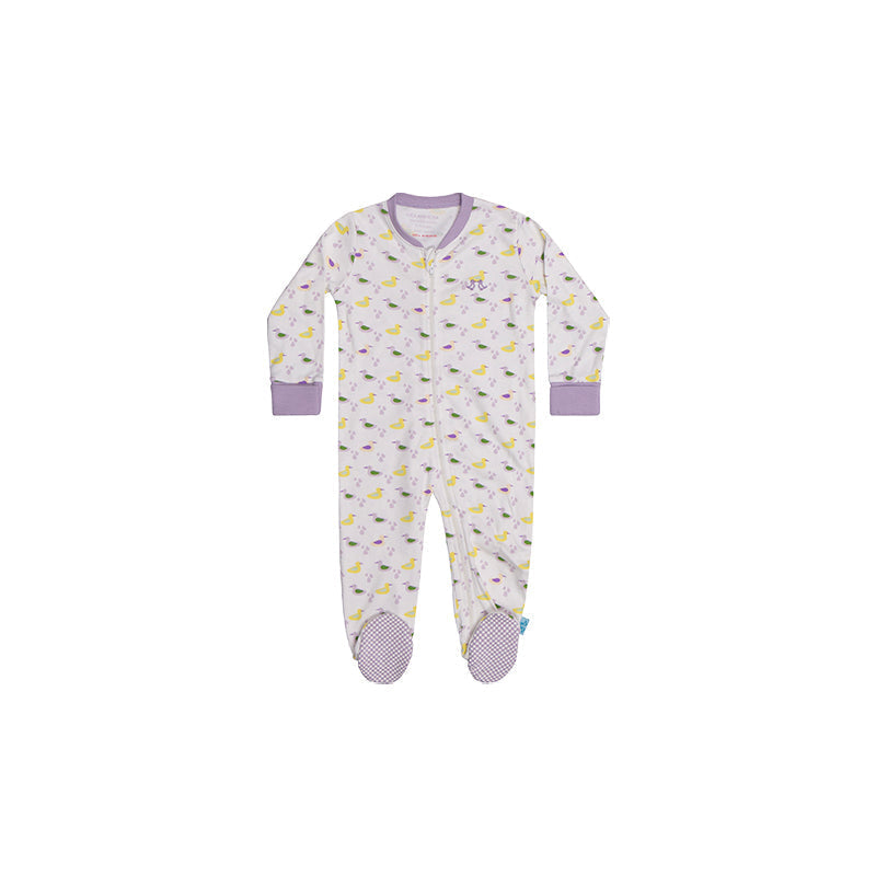 Our new Lilac duck print girl's sleepsuit will make an adorable addition to your baby’s wardrobe.