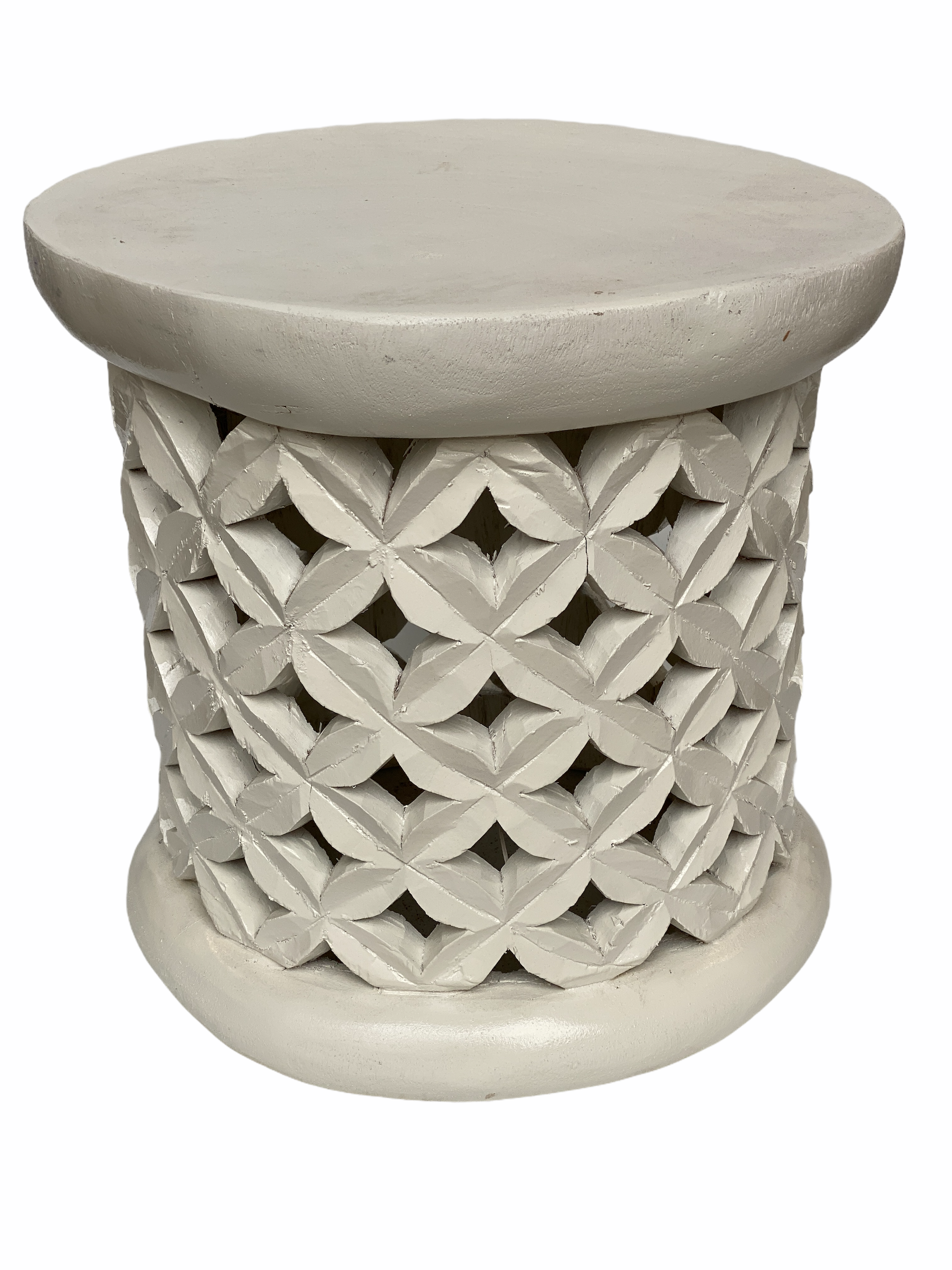 Historical Detail: The craftsmen of the Bamileke are famed for their skill in woodcarving. They create a variety of remarkable round stools with repetitive openwork designs, all carved out of one tree trunk stump.