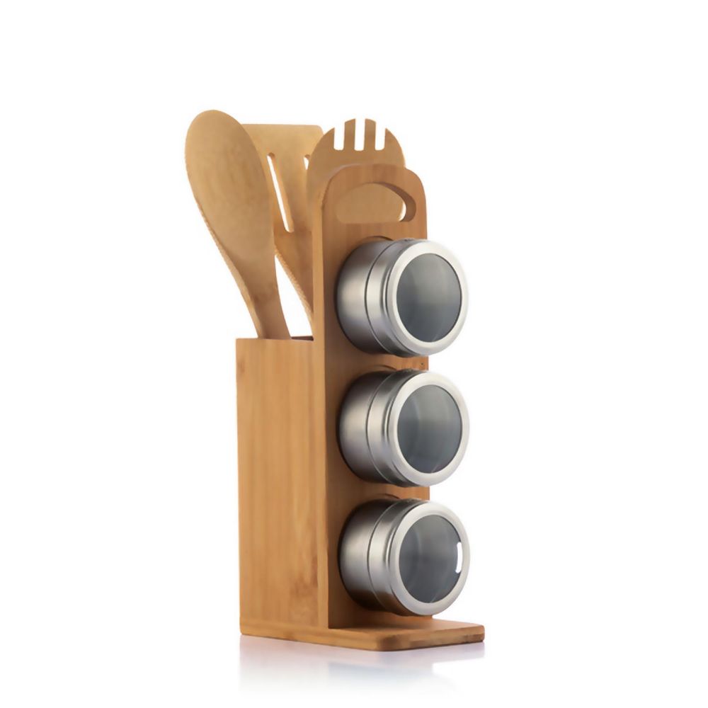 Bamsa Bamboo Set & Magnetic Spice Tins 7 Pieces Stainless Steel