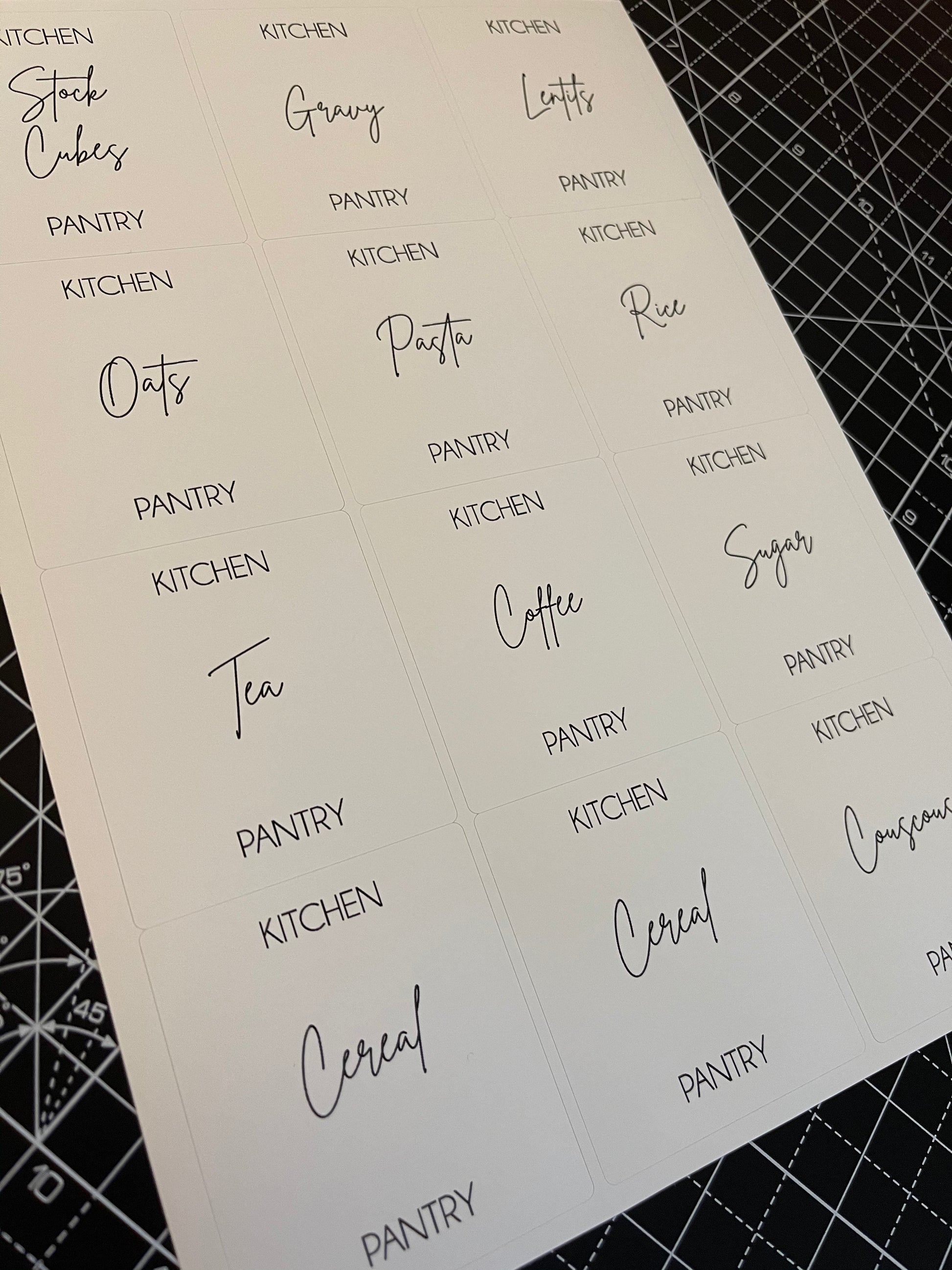 Basic Pantry Personalised Jar Labels Sticker Bundle Fancy Font - 12 Labels