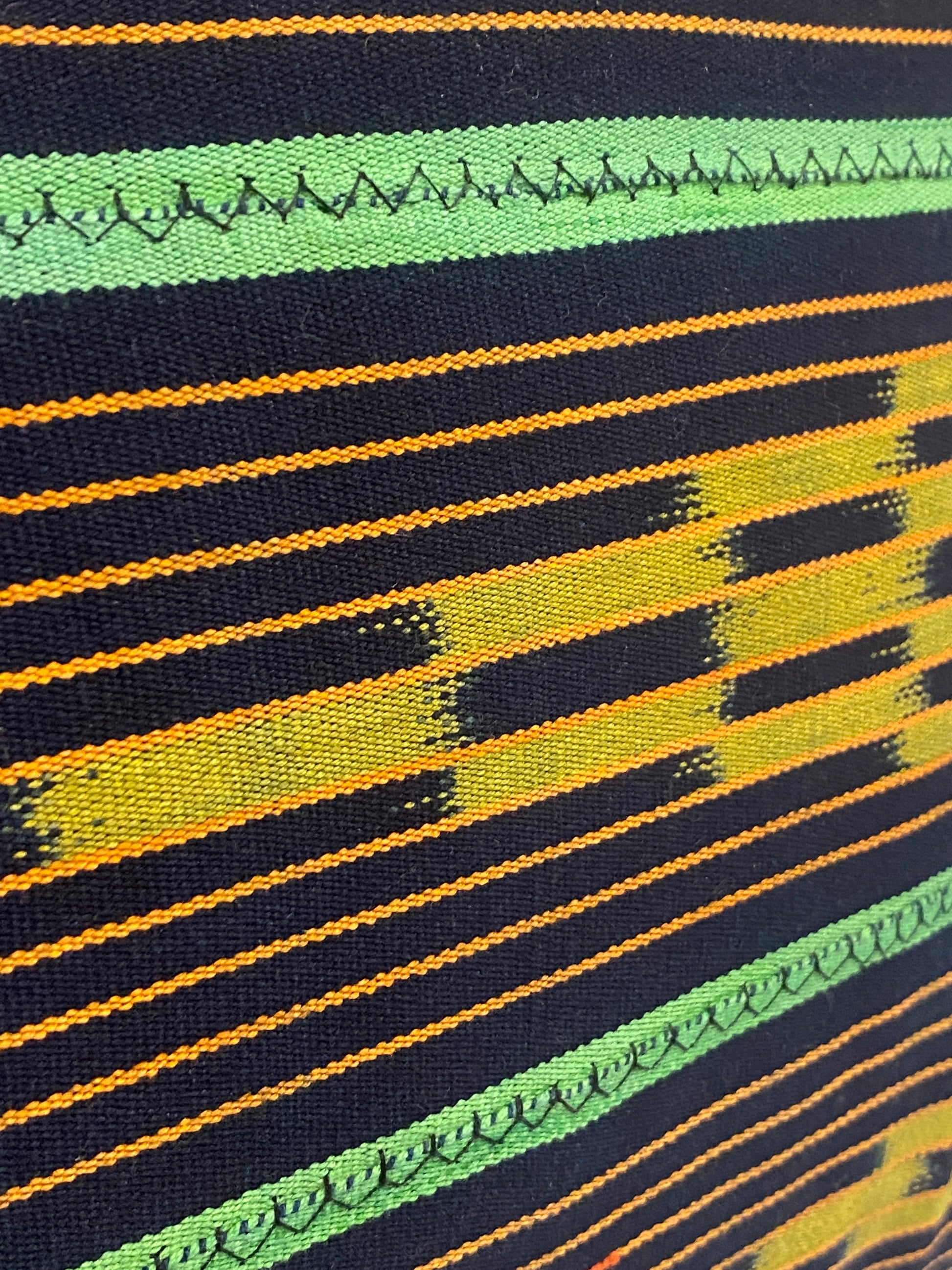 In Cote d'Ivoire, the fabric is affectionly called "pagne Baoule". The textile clearly finds its name and roots from the Baoule, Akan people of Cote d'Ivoire, but us more originating from the 16th century Ashanti Kingdom, which empire stretched from present day countries of Ghana and Cote d'Ivoire. For centuries, the fabric has been adorned during community gatherings, special events and traditional proceedings and festivities. For many local communities, the fabric is the main source of revenue. In the small town of Sakiare its reported that 95% of the villagers are weavers.
