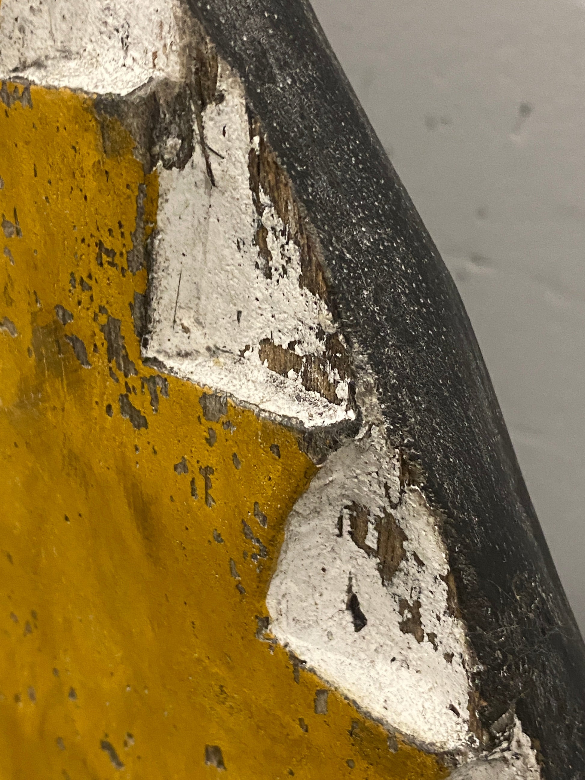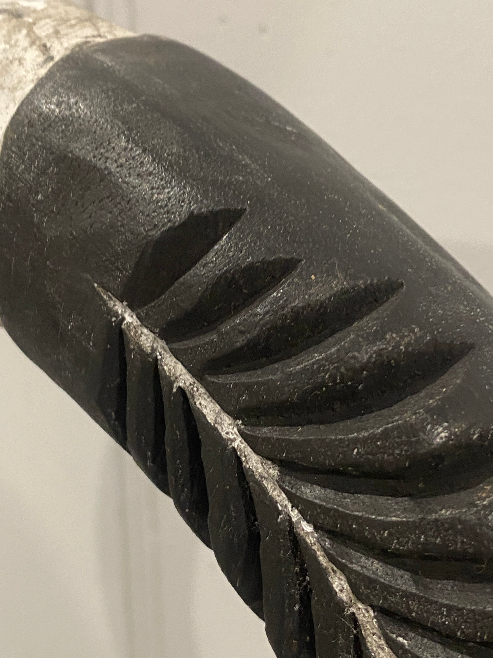 The very characteristic, round-shaped “lunar” kplekple mask is surmounted by two horns. It is used for celebrating peace and joy.
