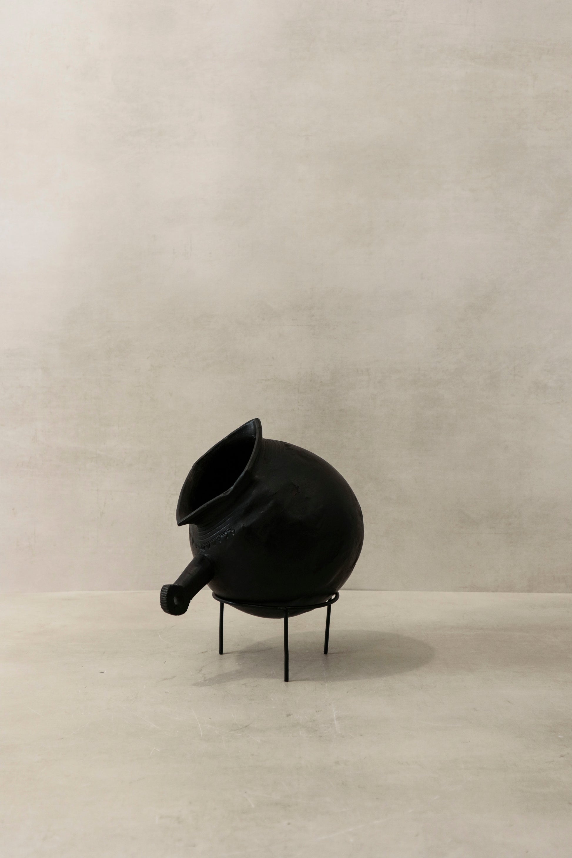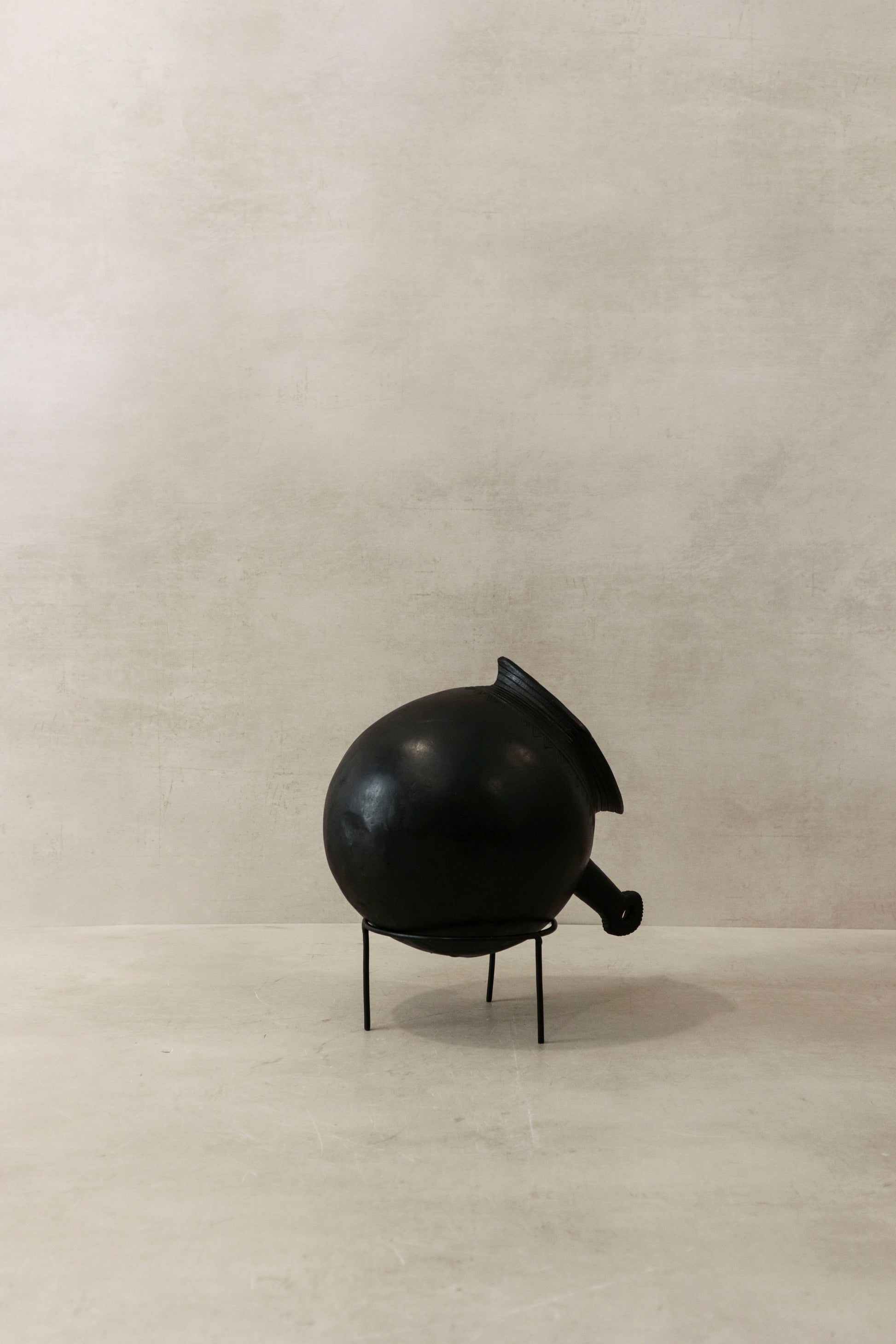 A Decorative water jug, hand carved out of a single light-weight wood. Its estimated to be more than 30 years old. Please, refer to pictures for condition. It does not stand on its own, the bottom is rounded and comes with a bespoke stand.