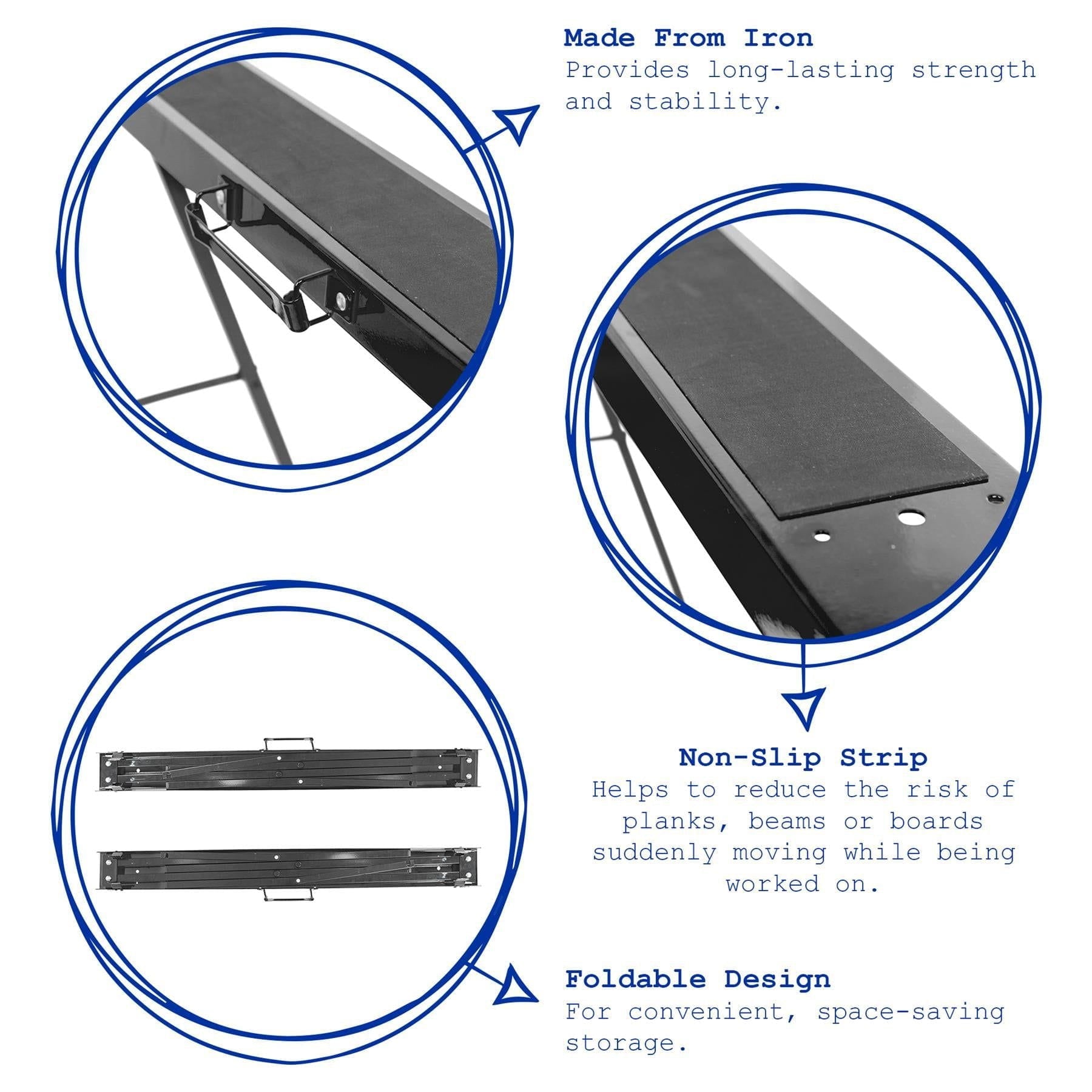 Their sturdy iron construction boasts long-lasting strength, stability and support, whether used for keeping wooden planks and beams aloft while sawing or as the base for a makeshift worktop or table.