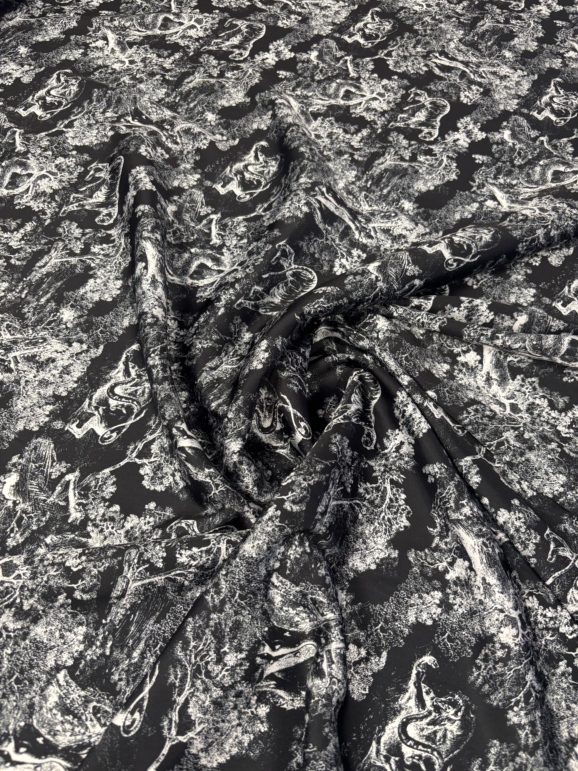 Black & White Satin Fabric by the Metre – Toile de Jouy Scenic