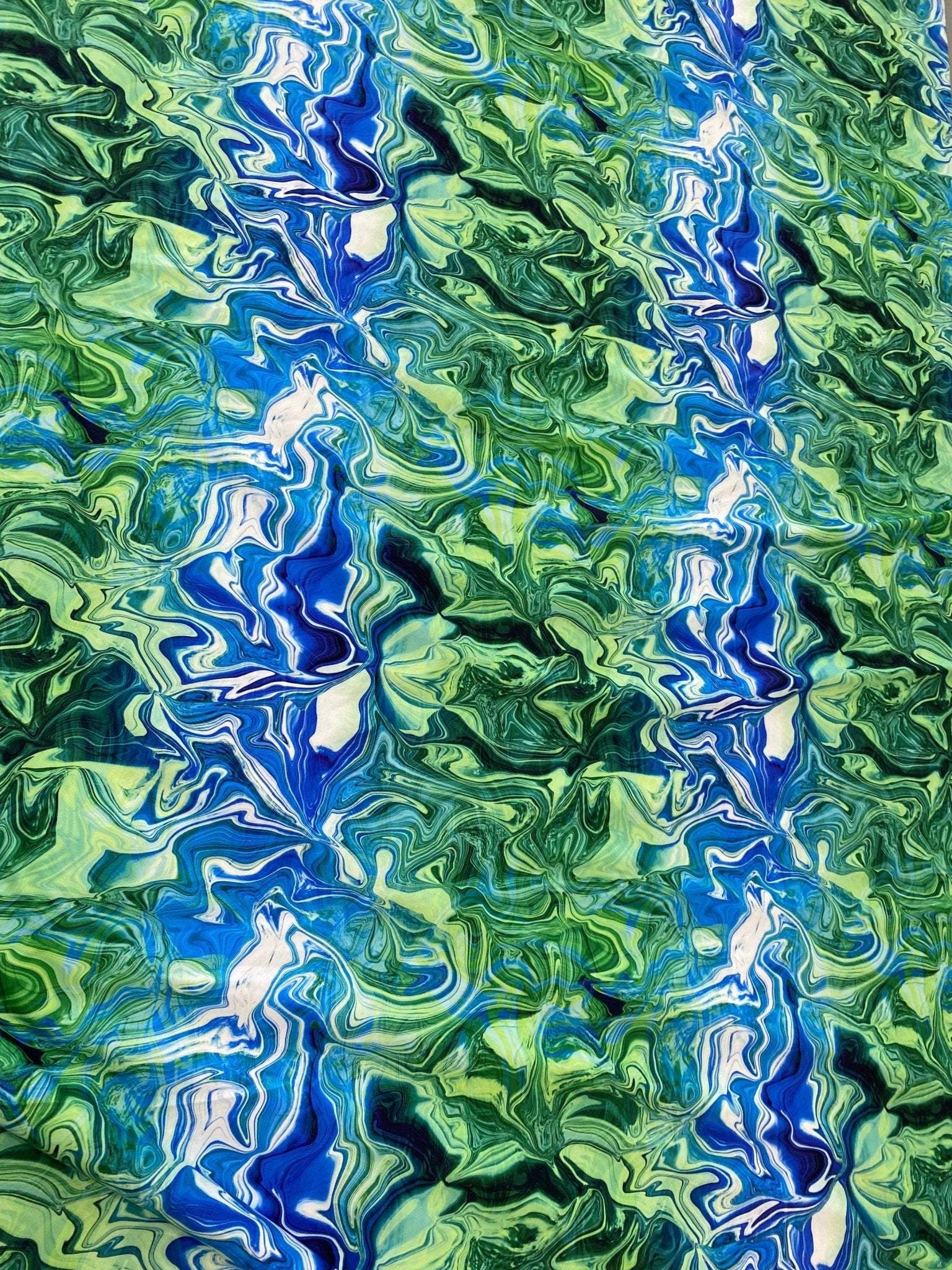 Discover our Blue and Green Pattern Abstract Wave Fabric, perfect for various crafting projects. This fabric features a vibrant abstract wave design in blue and green, making it an eye-catching choice for apparel, home decor, and more. Its high-quality material ensures durability and a soft feel, ideal for any creative endeavor.