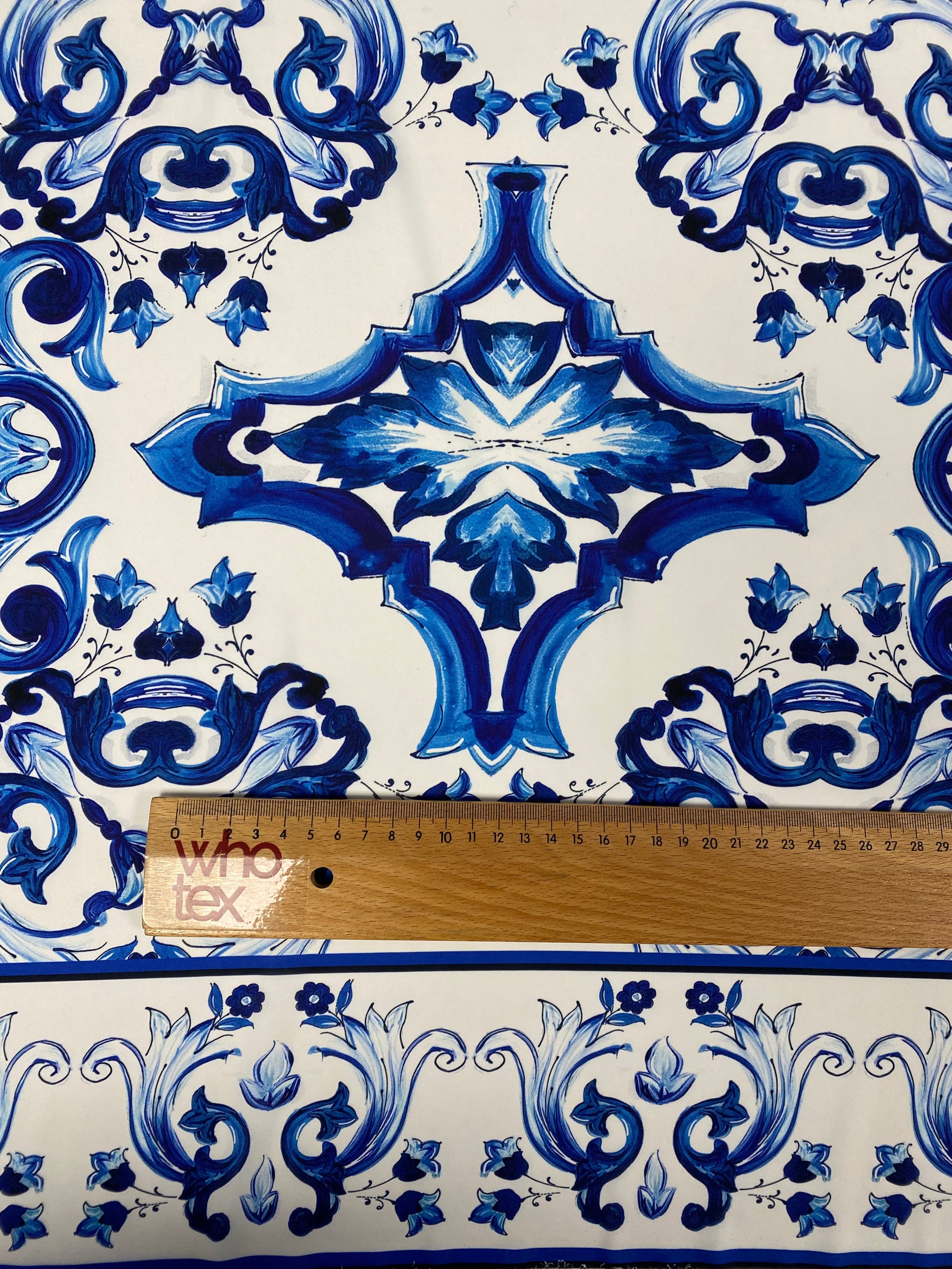 Blue and White Majolica Tile Print Fabric – Custom Printed Fabric, Choose Material by Metre