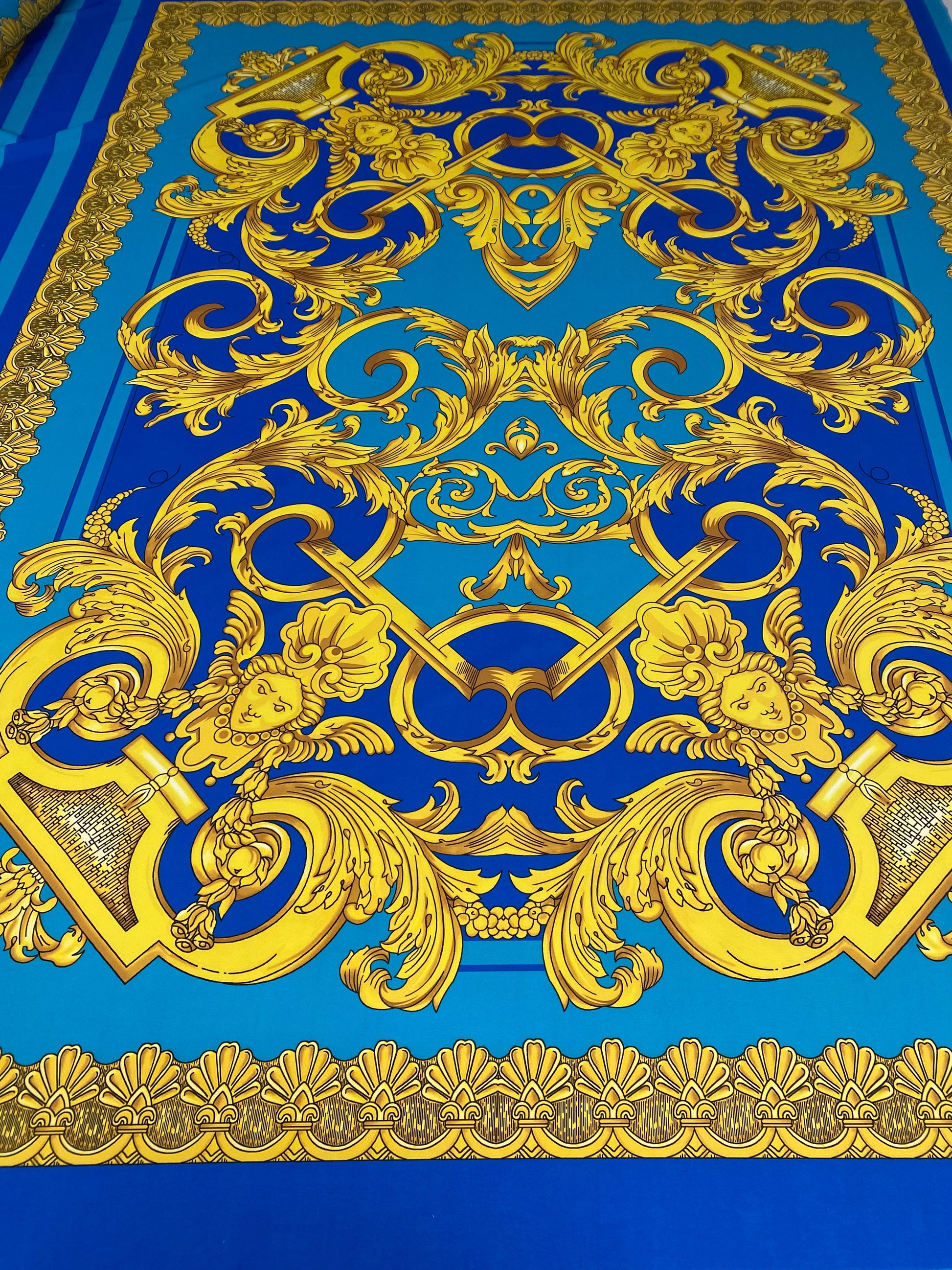 Blue & Gold Baroque Crepe Fabric by the Metre – Luxury