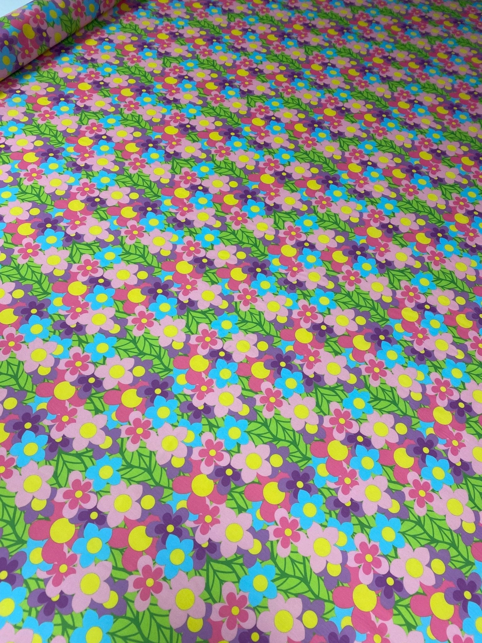 Blue Tile Print Spandex Fabric – Mediterranean Pattern by Metre