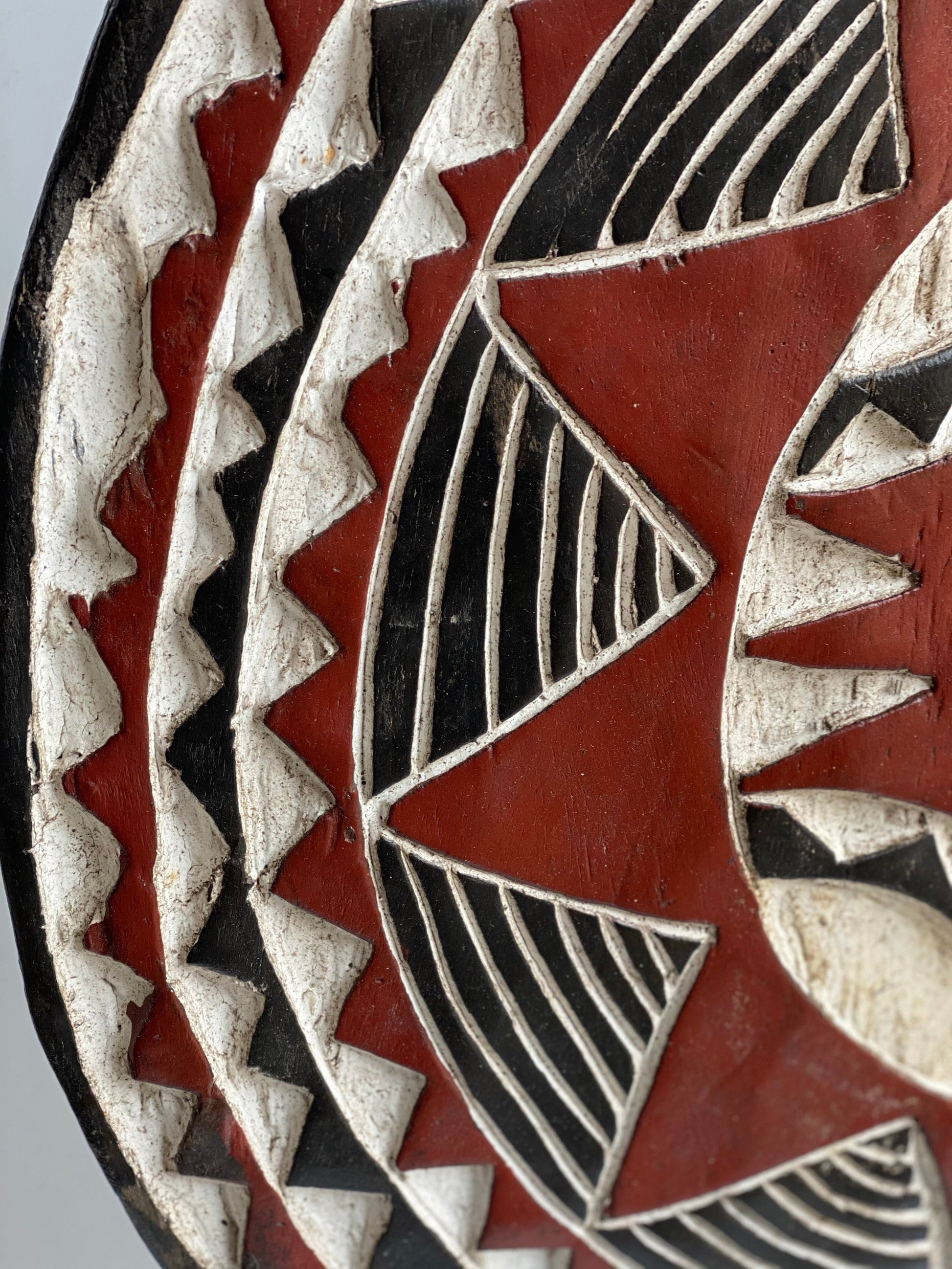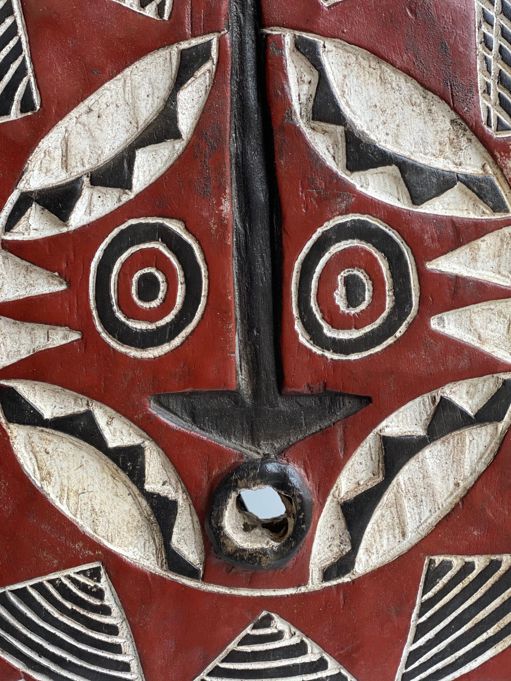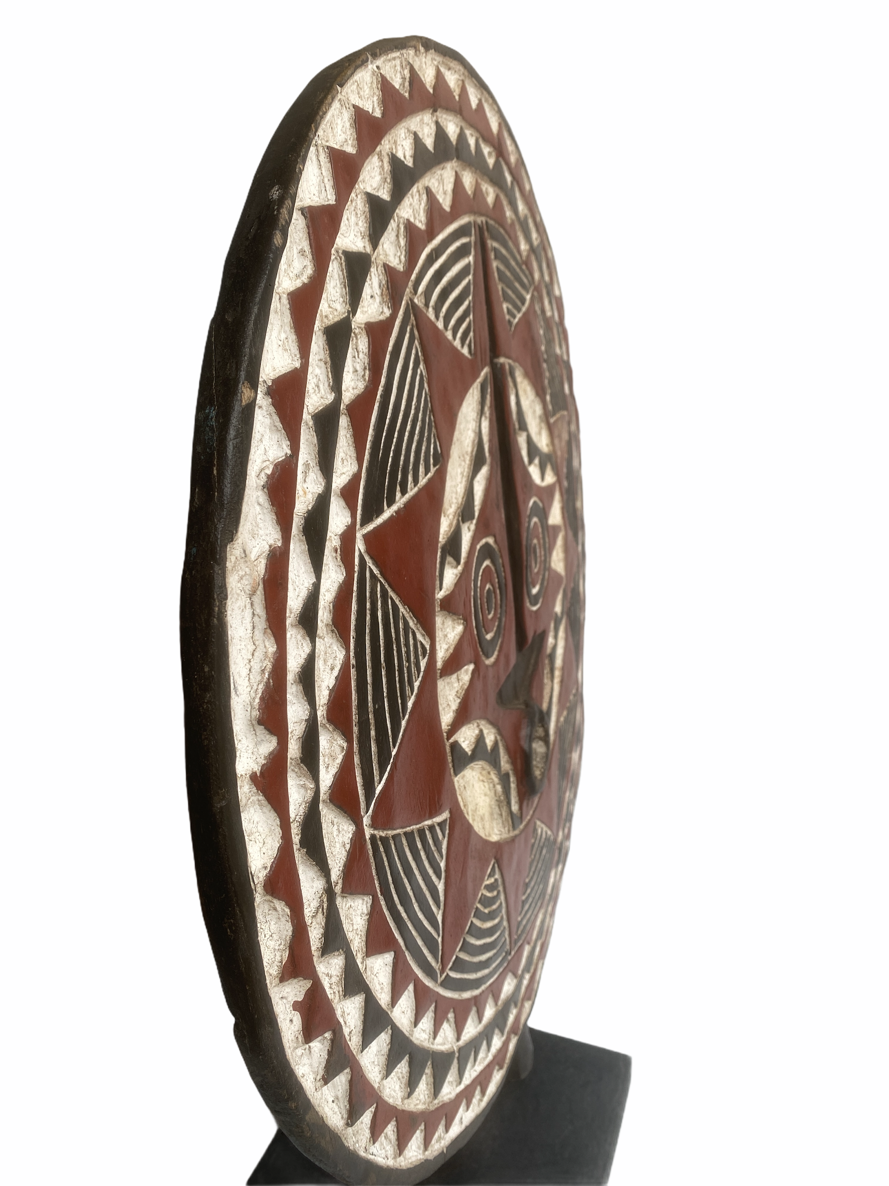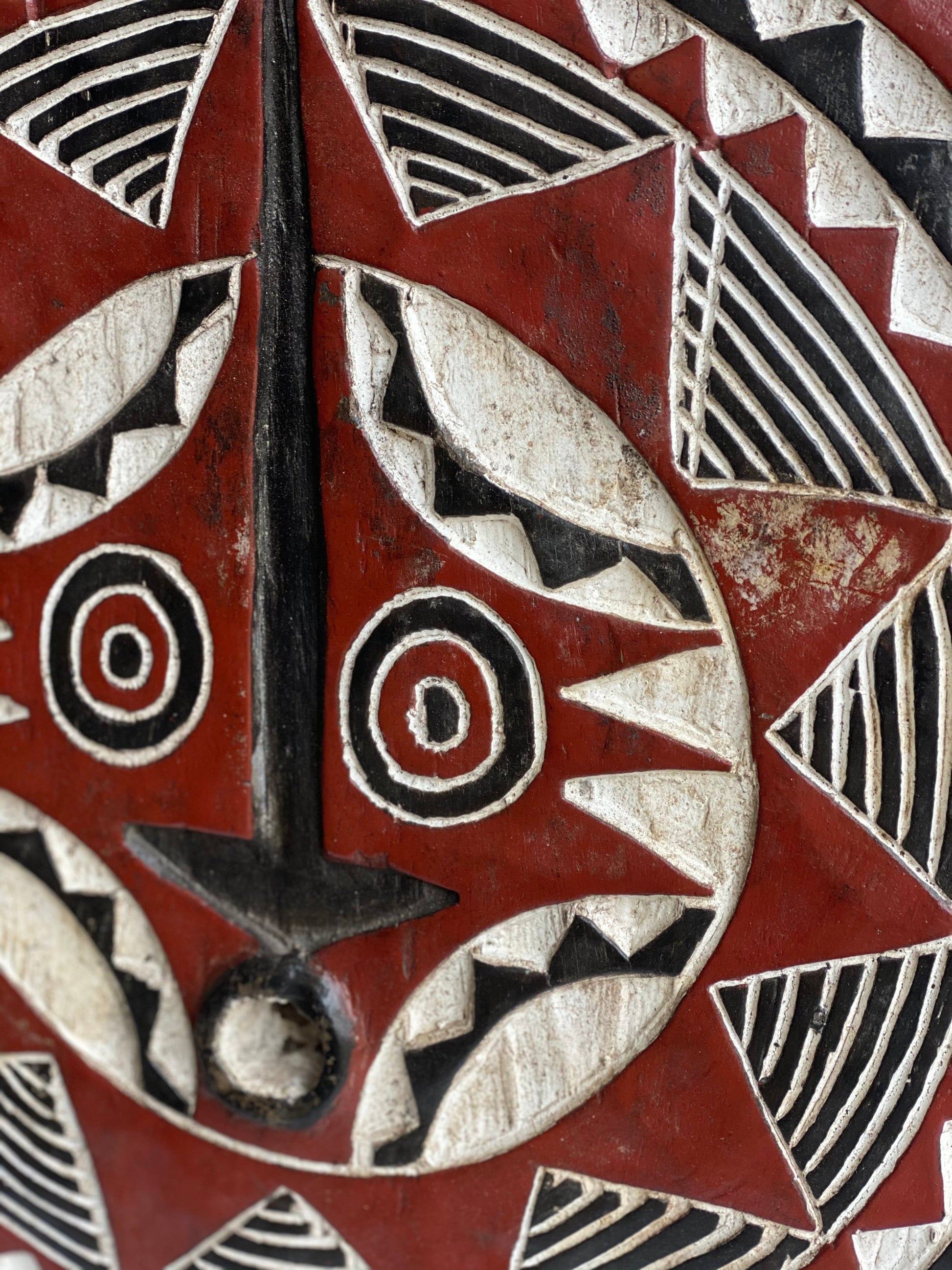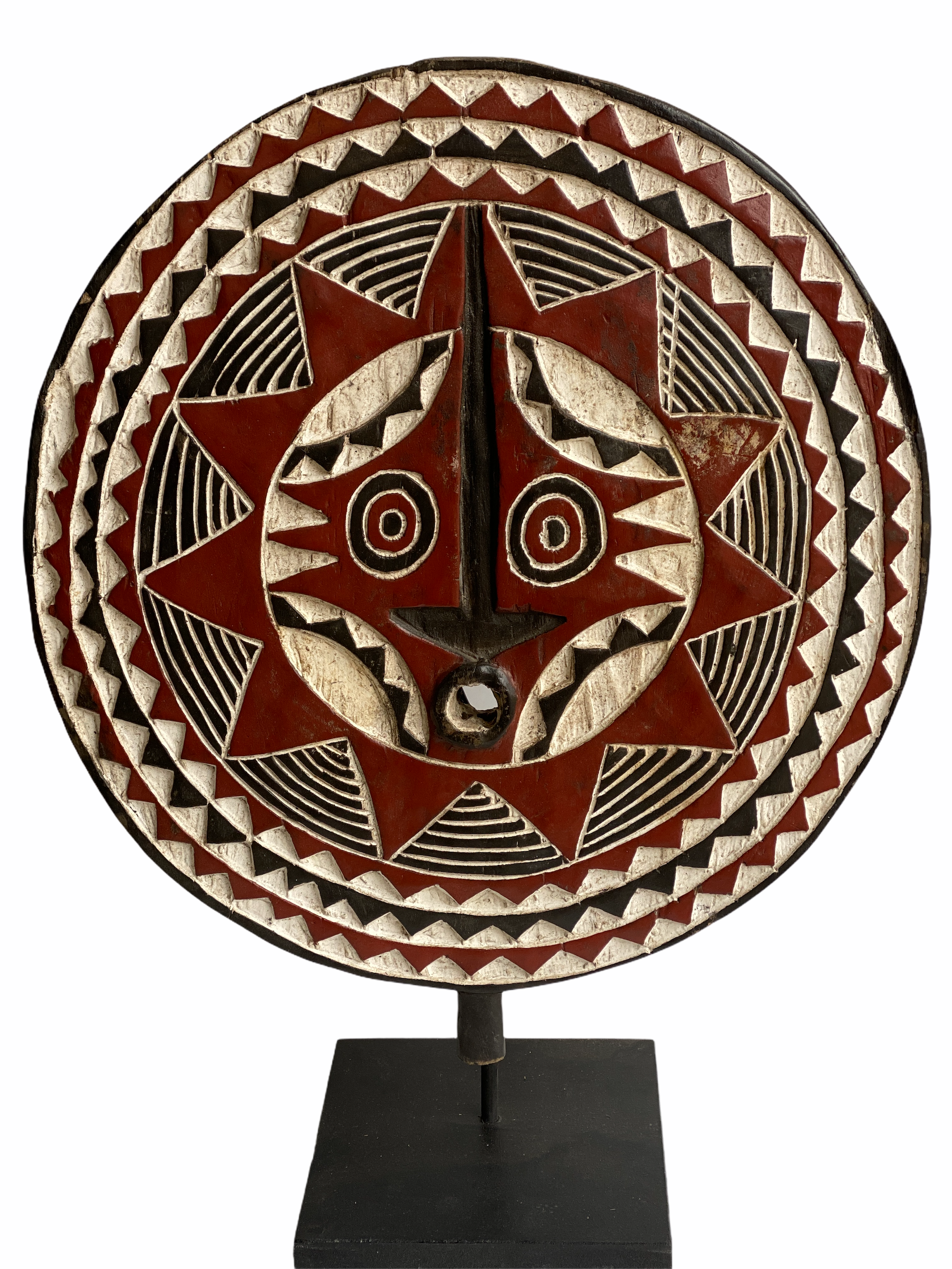 Sun Masks appear during agricultural and harvest festivals among the Bobo people. They honour the Sun and its power to yield a healthy crop. The chequer-board light and dark geometric atterns are understood and interpreted in increasingly complex ways depending on the observer. The use of light and dark pigments represents dichotomy of innocence and knowledge. The highly abstracted and geometric forms of the Bwa and Bobo played an important inspirational role in the development of Western art movements of the early 20th century.