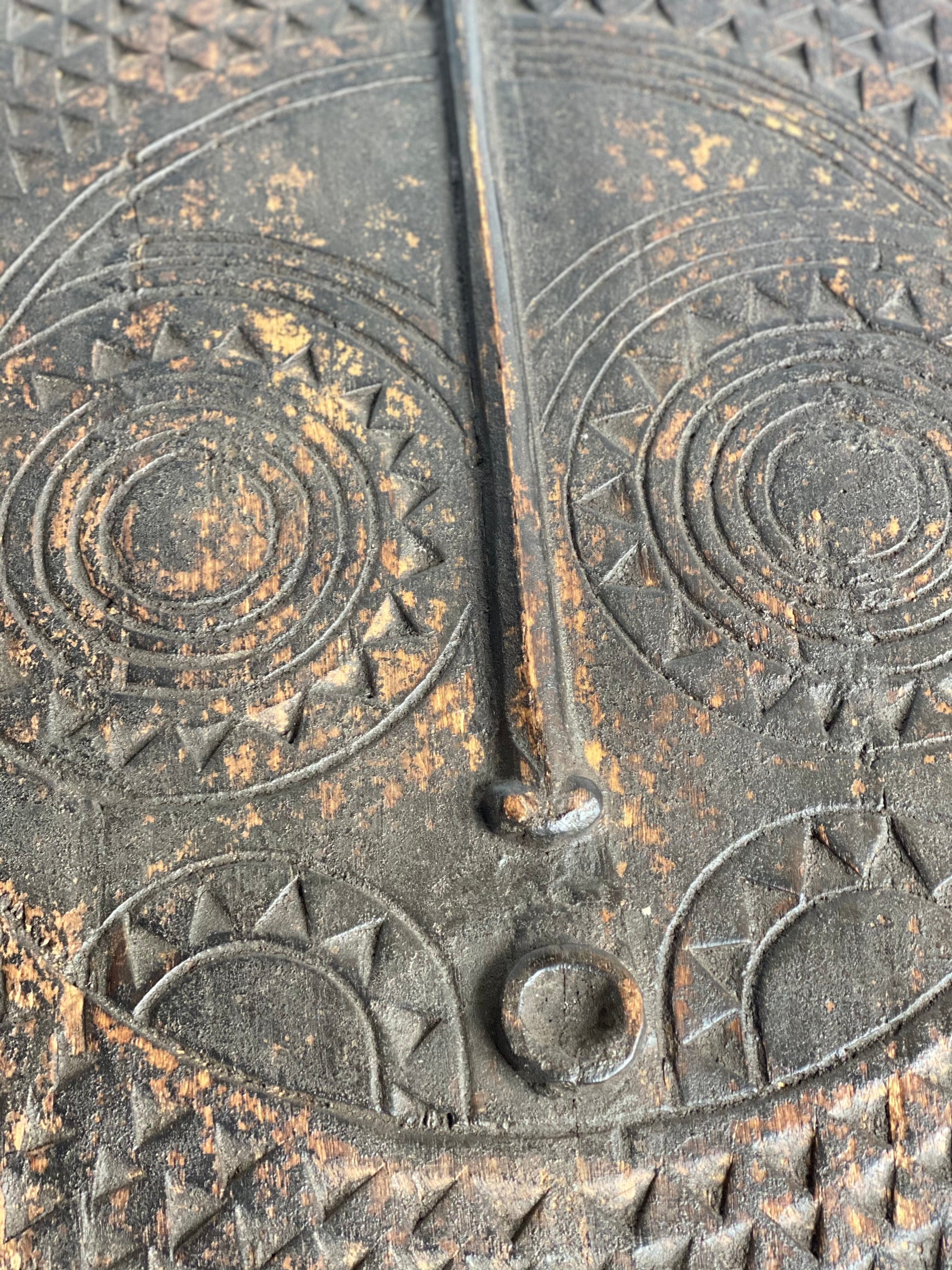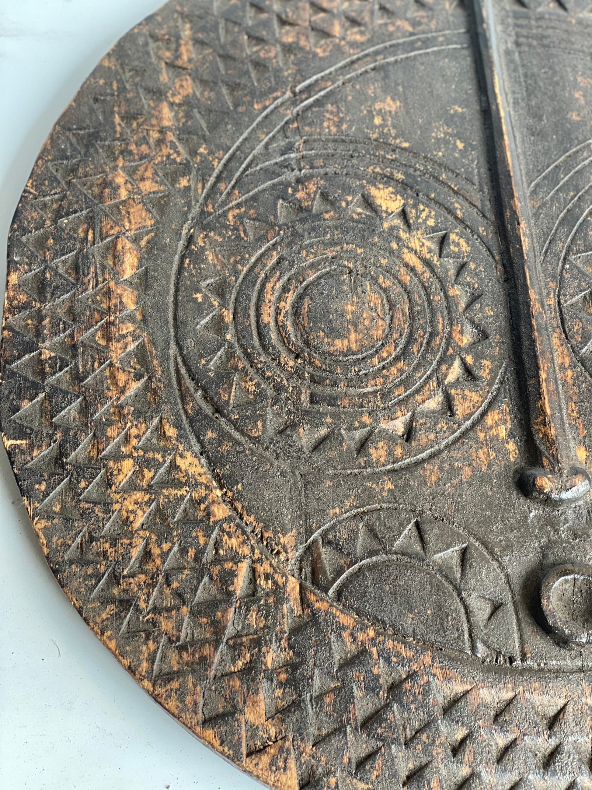 Sun Masks appear during agricultural and harvest festivals among the Bobo people. They honour the Sun and its power to yield a healthy crop. The chequer-board light and dark geometric atterns are understood and interpreted in increasingly complex ways depending on the observer. The use of light and dark pigments represents dichotomy of innocence and knowledge. The highly abstracted and geometric forms of the Bwa and Bobo played an important inspirational role in the development of Western art movements of the early 20th century.