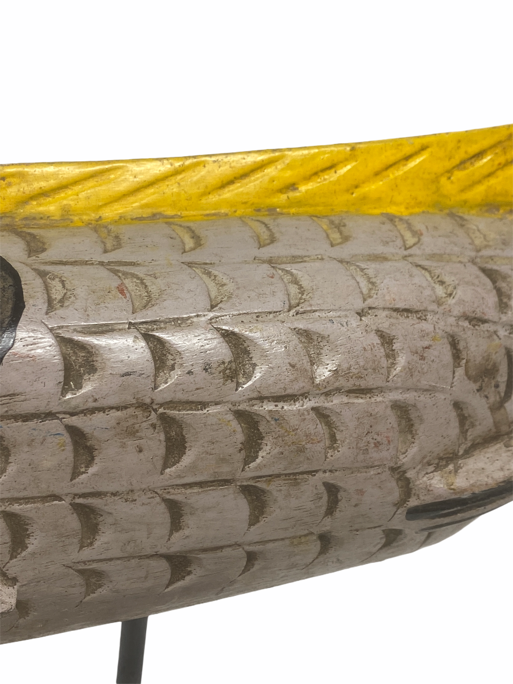 Our Bozo fish are hand crafted by Bozo artisans in Mali, these river sculptures are hand-carved from wood, painted, and then antiqued through an underground smoking process.