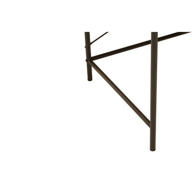 Neatly proportioned drawers glide open to store pens, devices, and paperwork, keeping the top ready for focused work. The brown metal base features a cross pattern that strengthens the structure without adding bulk.