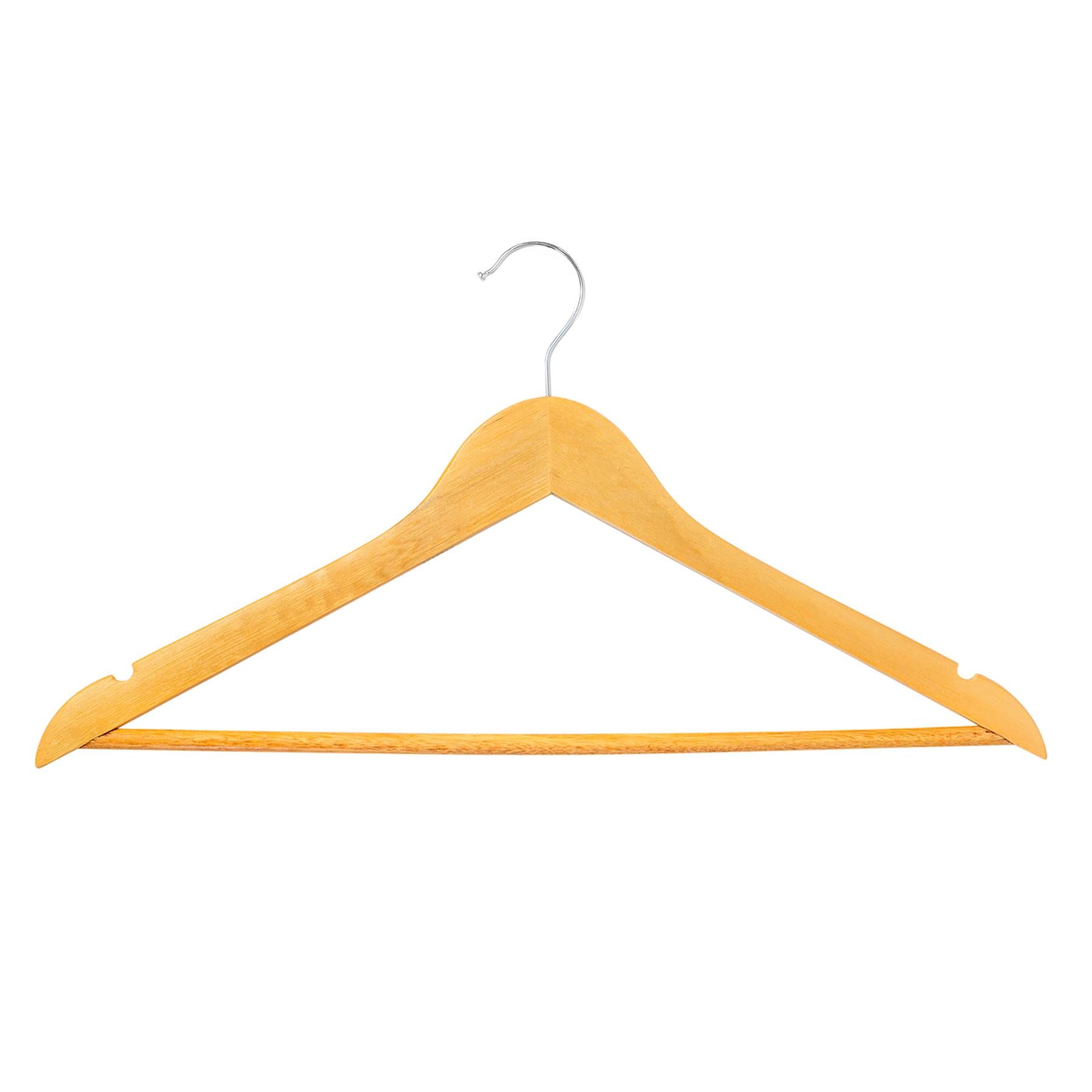 These chunky wooden hangers provide a premium alternative to flimsy plastic or wire alternatives, helping to better preserve the shape of shirts, suit jackets, blazers, coats and more.