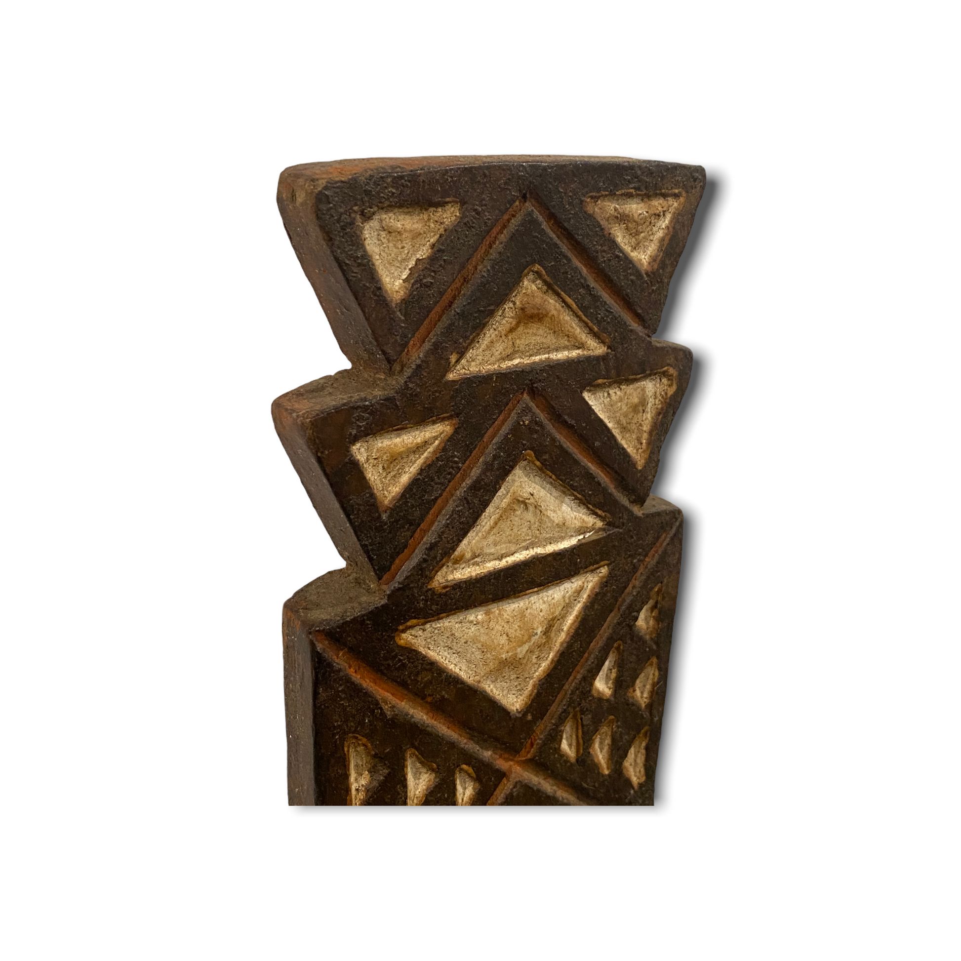 A beautiful hand crafted wood carving of a mask made by the Bwa people who live in Mali and Burkina Faso. This mask is worn over the head instead of the face during dancing ceremonies.