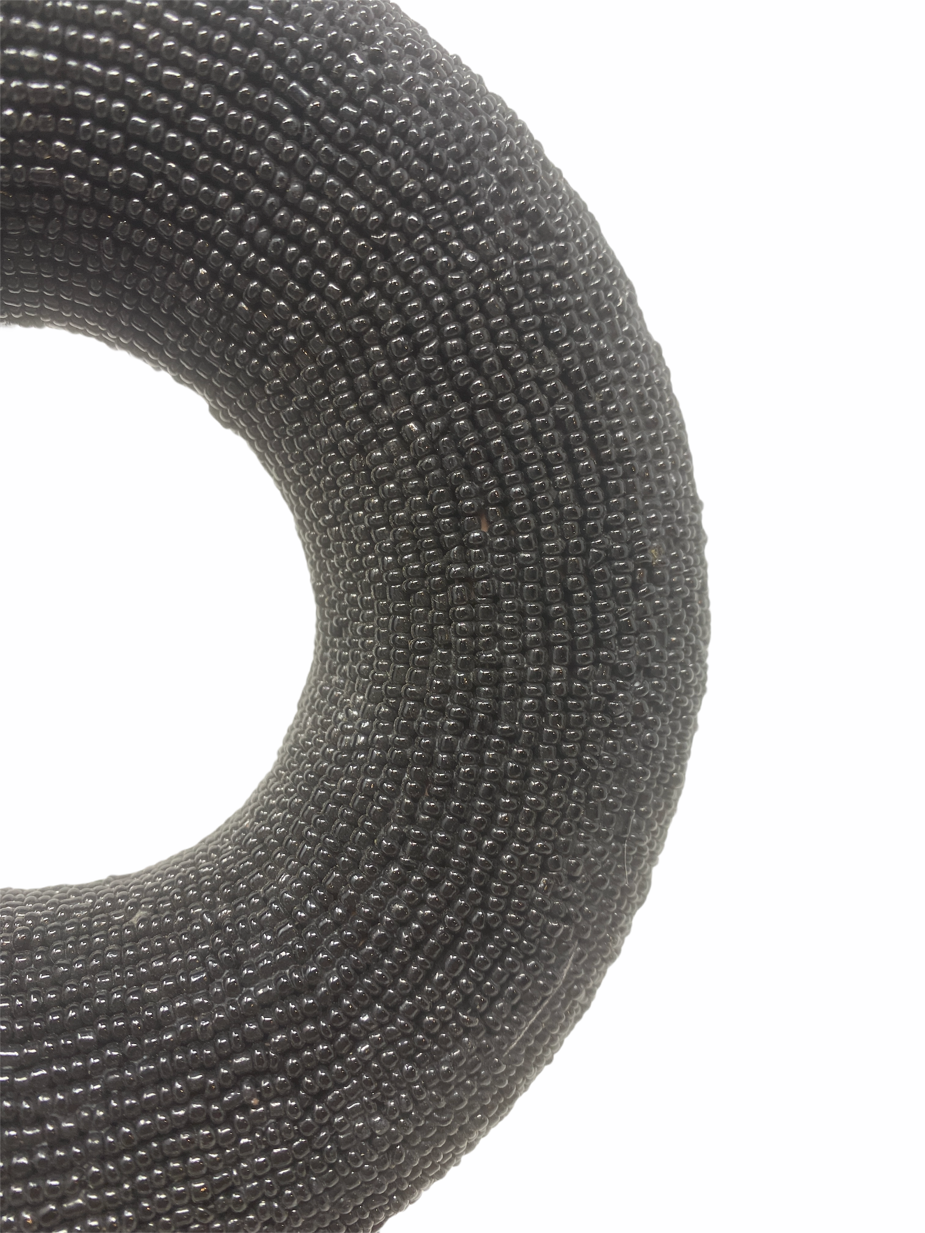 These beautiful handmade donut ring shaped bracelets are made by the Bameleke people in Cameroon. The bangle is made from clay and then embellished with glass beads.