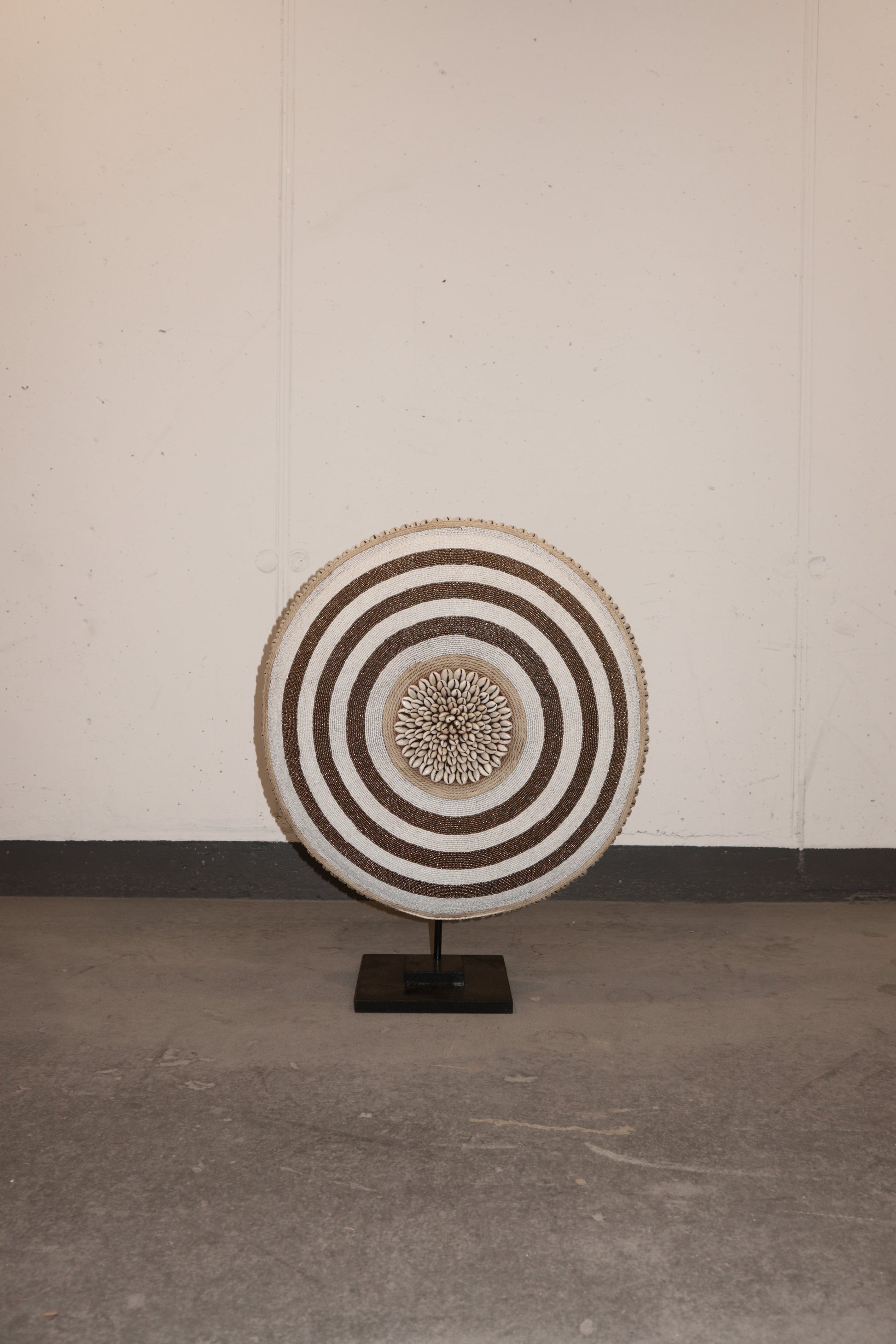 Cameroon Beaded Shield - L - 54cm Black & White 02