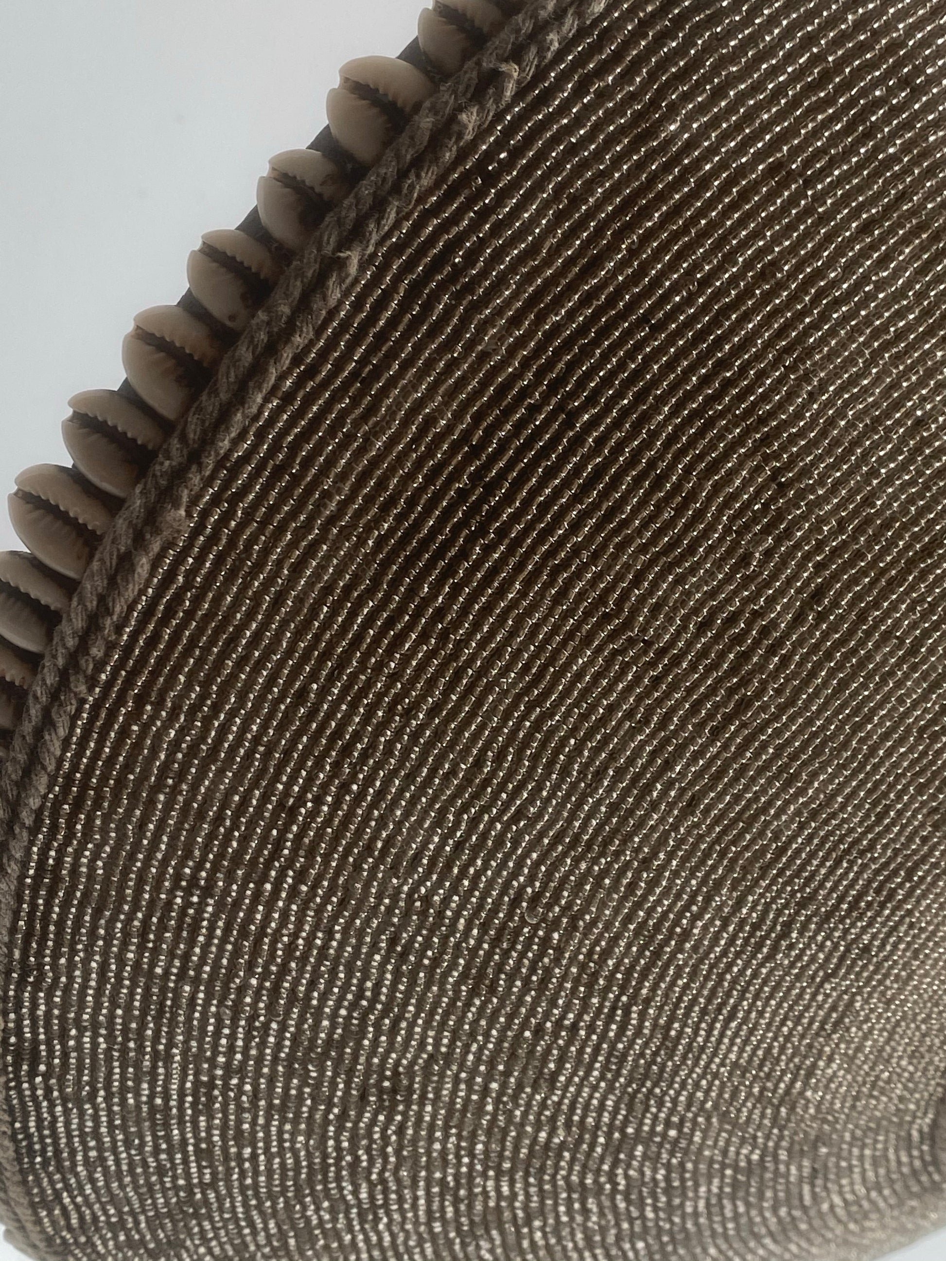 Historically used as a defensive weapon in wartime and displayed as a decorative symbol of status and wealth by the Tikar people in Cameroon. Meticulously crafted, carved from one solid piece of Baobab wood, a sacred wood used for medicinal and ritual purposes for centuries, this large shield boasts hundreds of hand-placed beads on manila string in a circular pattern around a dimensional cluster of natural cowrie shells in the centre. These decorative shields are one-of-a-kind, collaboratively crafted by a large group of people to make each piece truely unique and