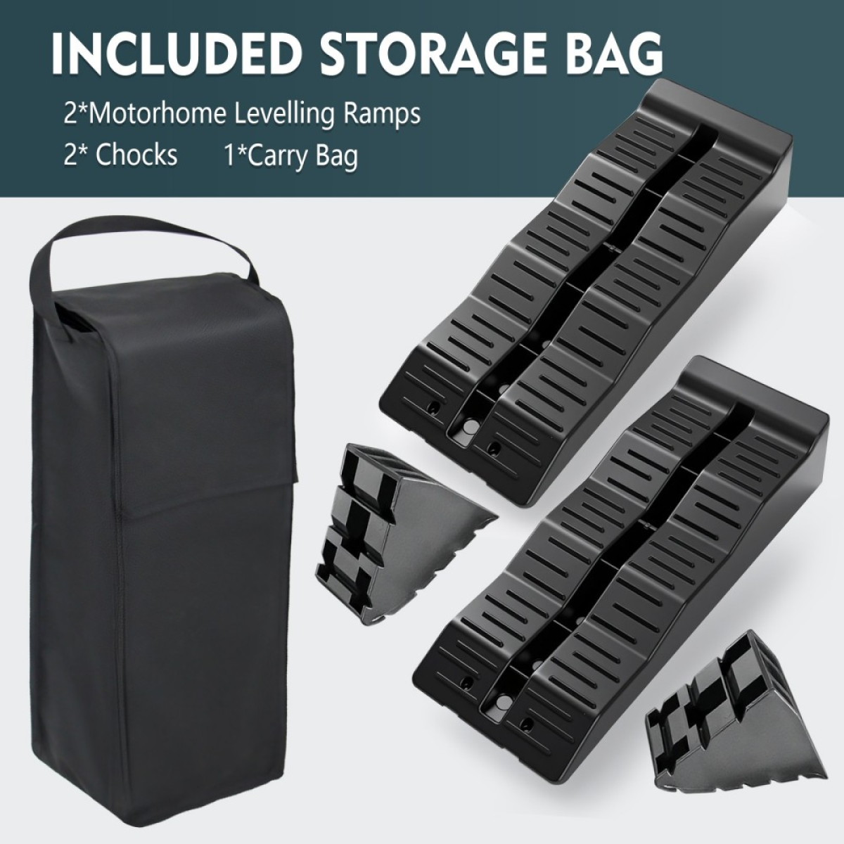 -The ultimate solution for achieving perfect balance and stability for your vehicle on uneven ground. Designed with meticulous attention to detail, these heavy-duty motorhome leveling ramps are an essential addition to any caravan, RV, or campervan owner's toolkit. This set is built to withstand the rigours of outdoor use, ensuring durability and long-lasting performance.