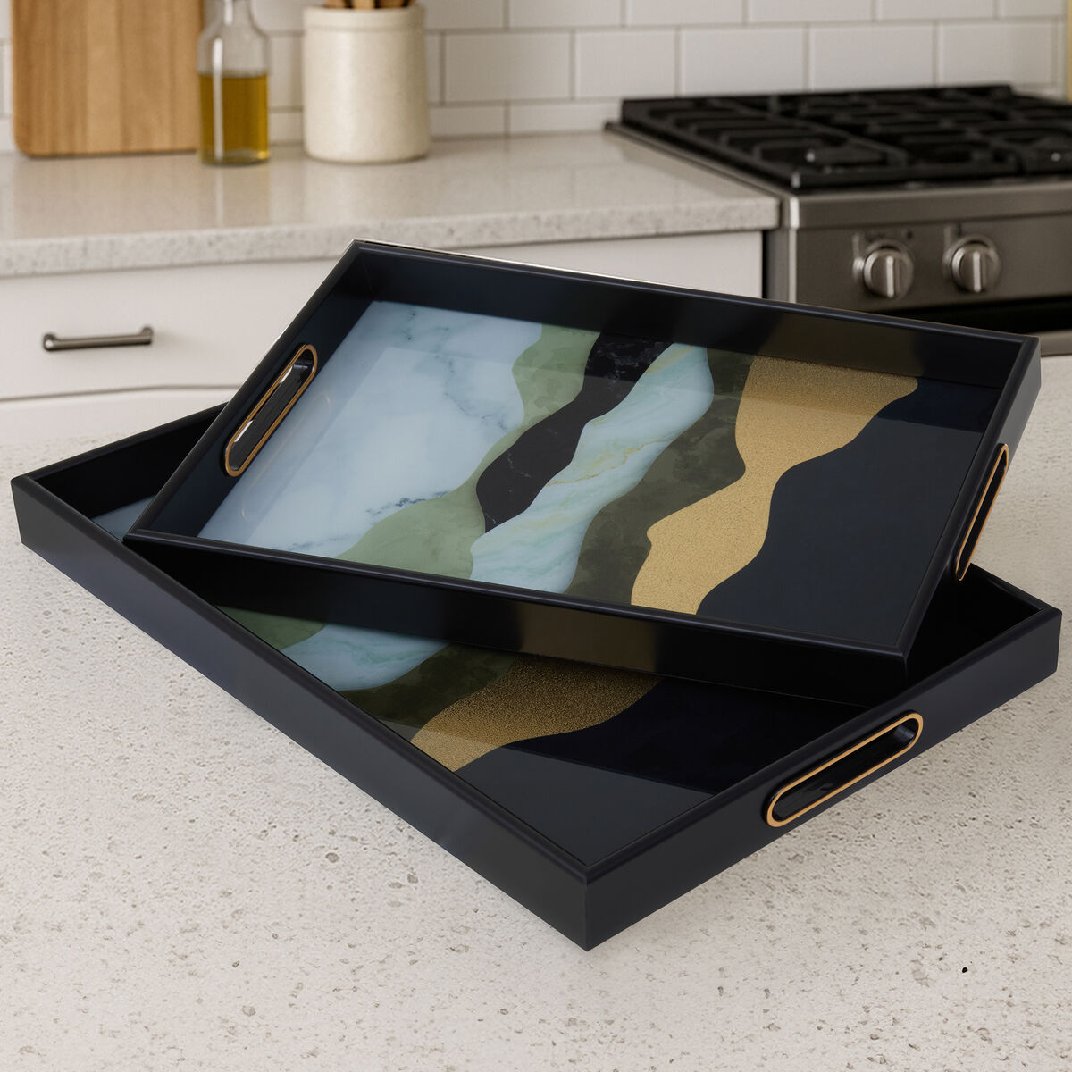 The assorted-colour artwork enlivens kitchens, coffee tables, and vanities without overwhelming other pieces. Use these rectangular trays for serving, staging, and layered decor.