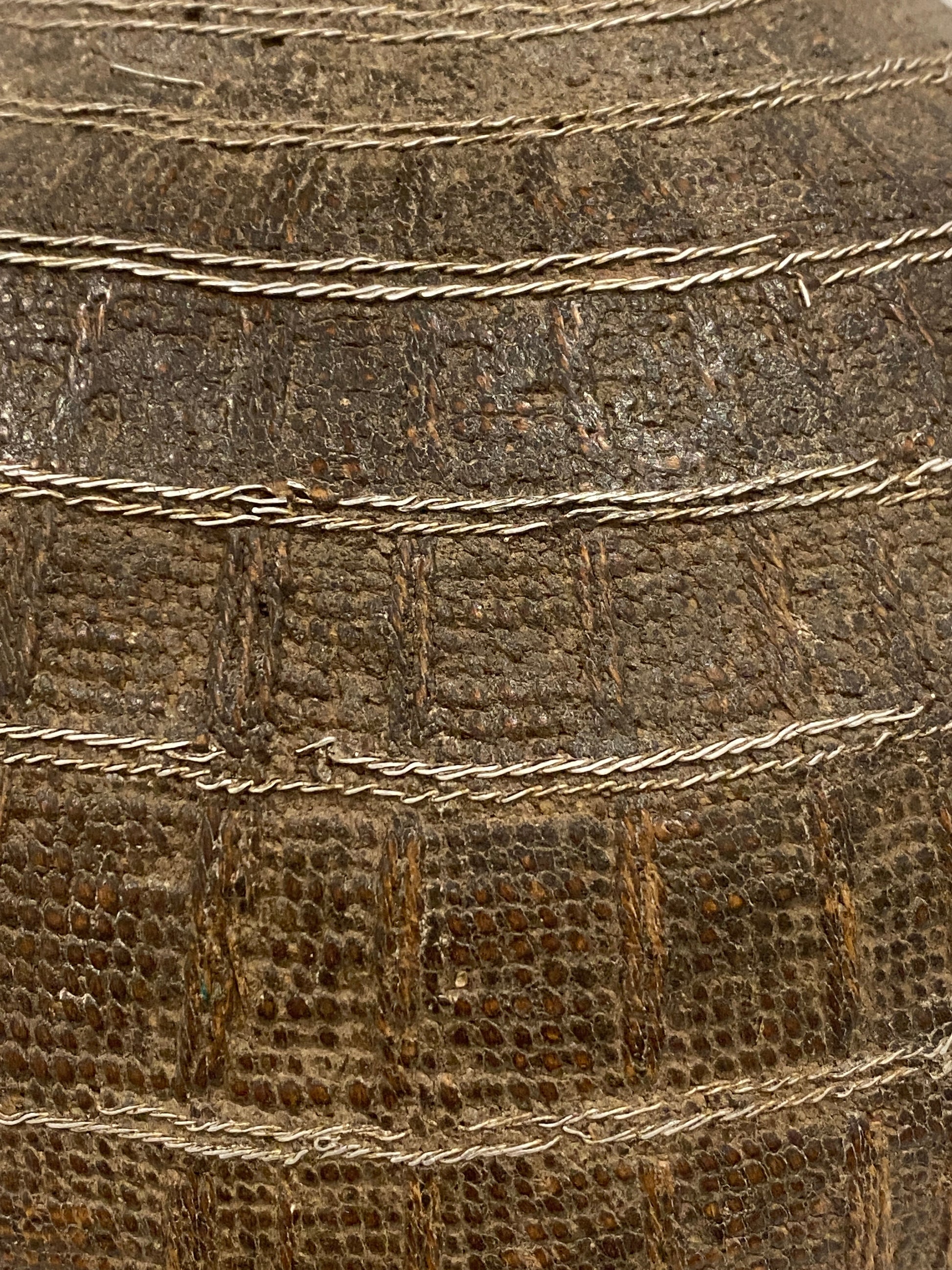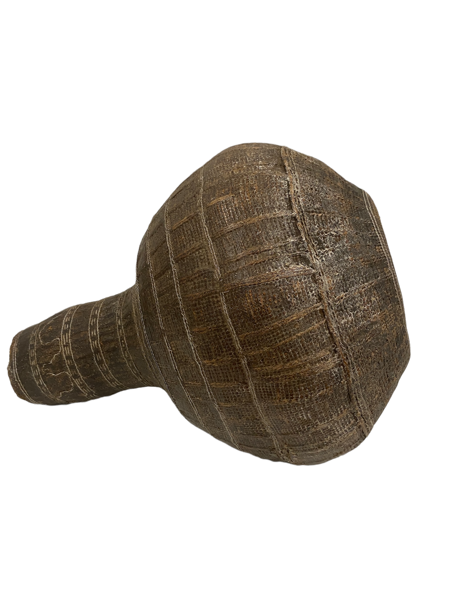 A Chocho or Gorfa milk jug is handmade using traditional Ethiopian techniques with woven sisal fiber and aluminum wire, and is waterproofed with beeswax. An attractive pear shaped art piece for the perfect interior design piece.