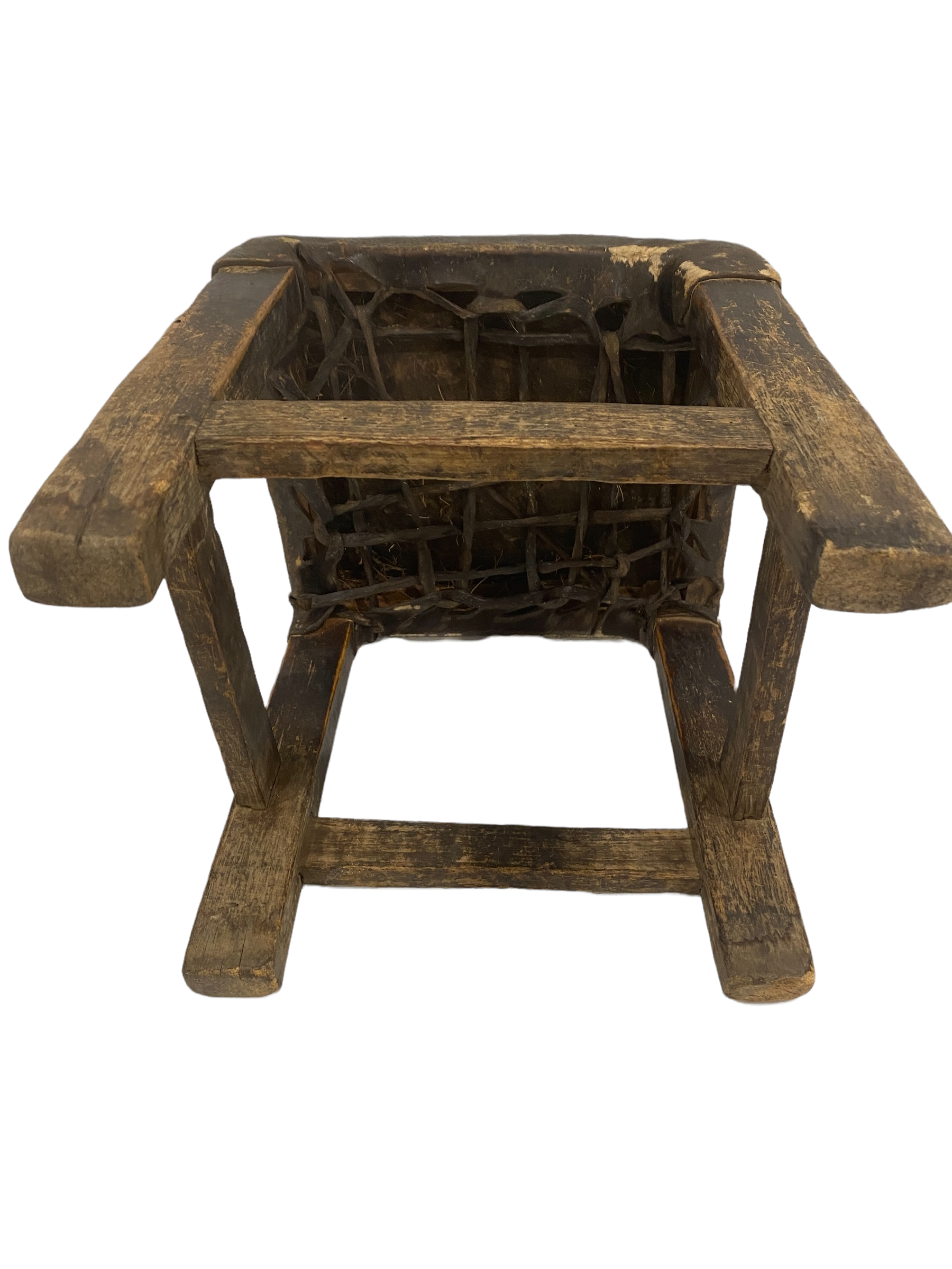 The seat is the most important piece of furniture in Africa, usually corresponding to his social rank. The stool is made using skins securely tacked around the sides to form a very sturdy seat. Unlike most African seats made from a single piece of carved wood these stools are made from pieces of wood.