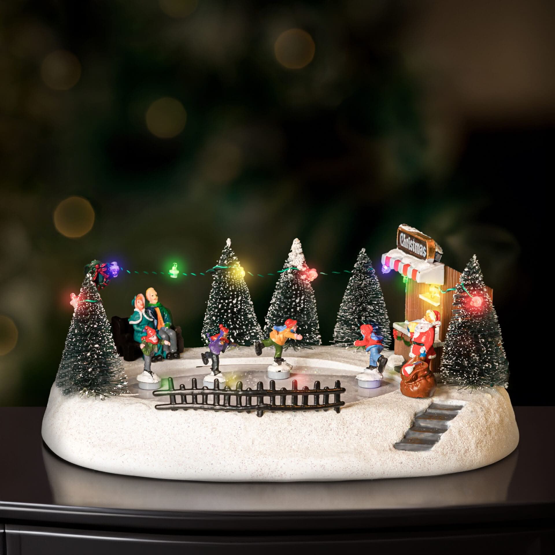 Christmas Ice Skating Musical Village Scene Decoration