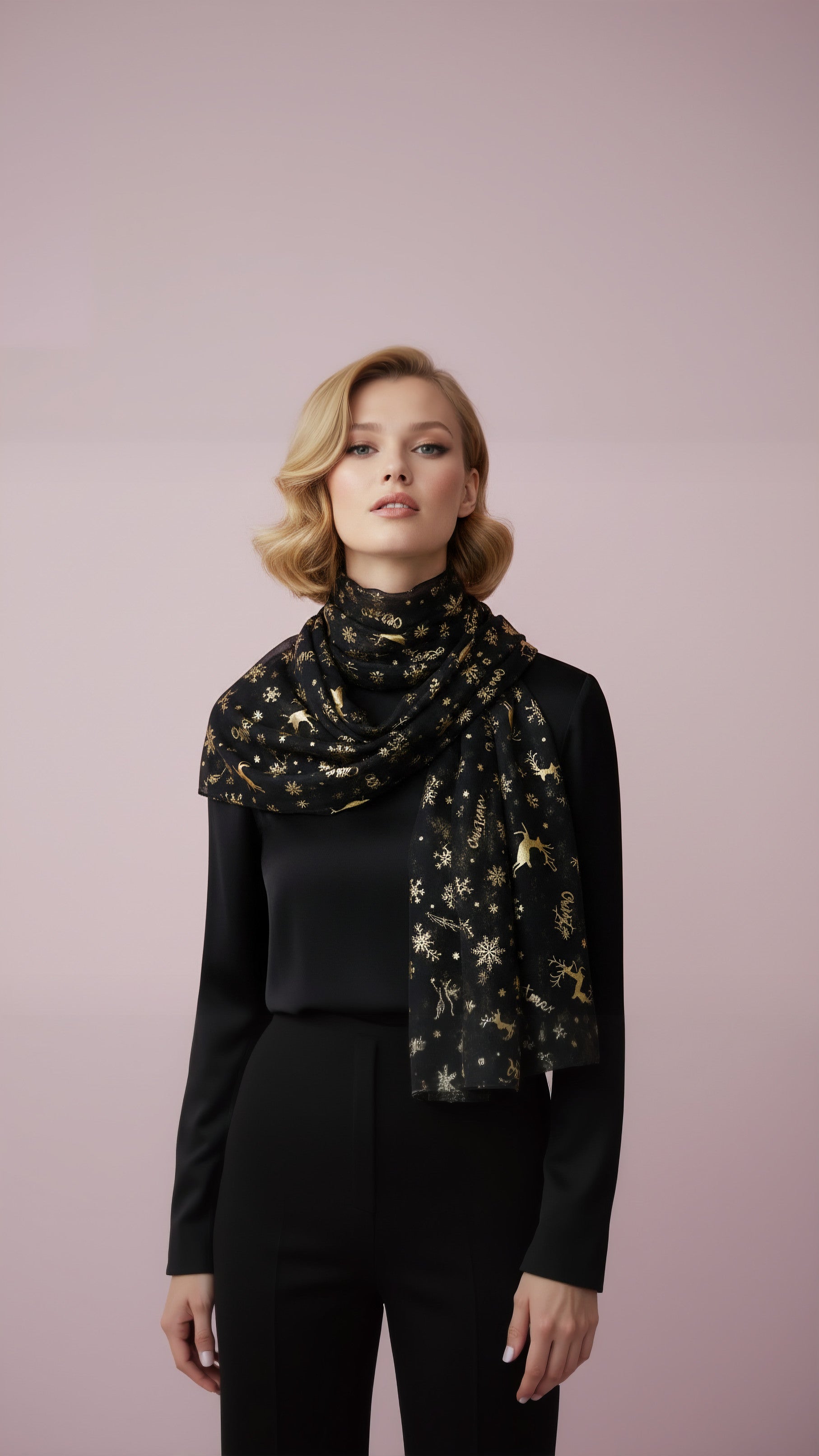 Christmas Reindeer Shimmer Gold Foil Scarf Pack of 12