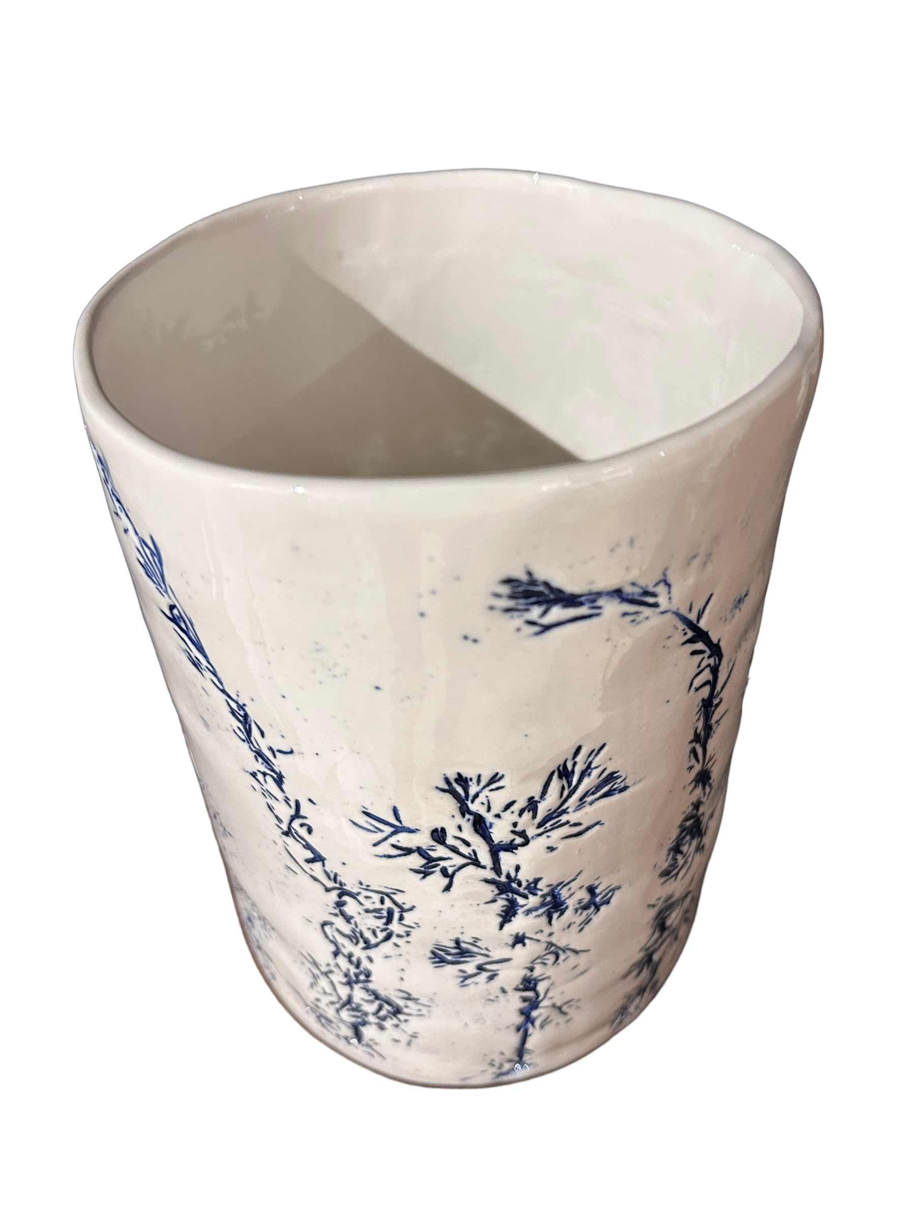 A beautiful hand made ceramic vase with Fynbos plant design. Made in South Africa.