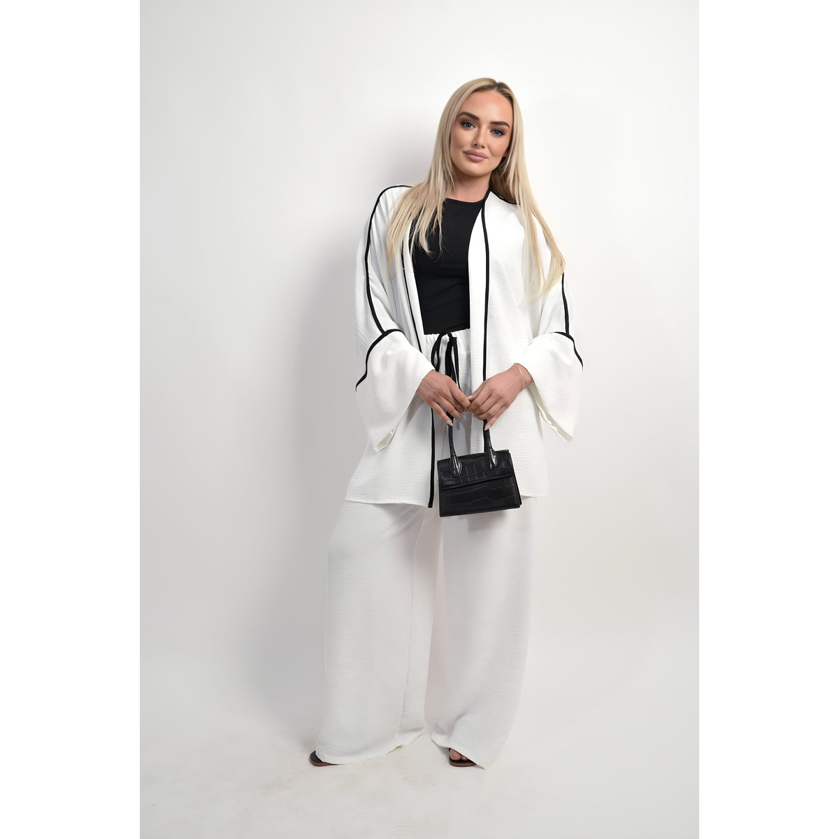 Contrast Trim Oversized Cardigan & Wide Leg Co-ord Set