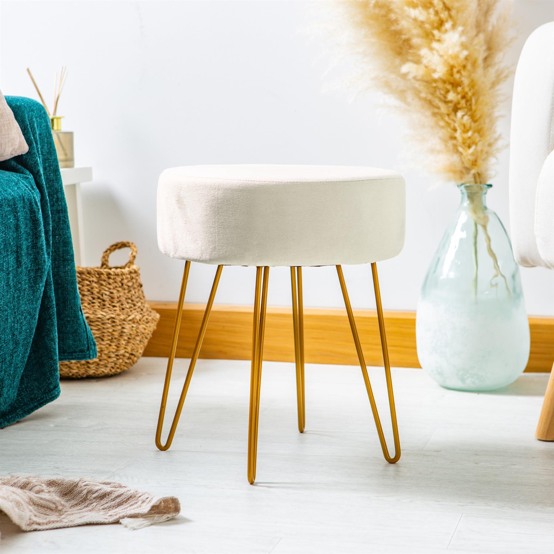 A layer of foam padding neatly encompasses the stools, ensuring lasting comfort, whilst the soft velvet covering creates the ultimate level of luxury. The metal hairpin legs, meanwhile, protect surfaces from scuffs and scratches whilst further accentuating the stool's elegant, stylish aesthetic.