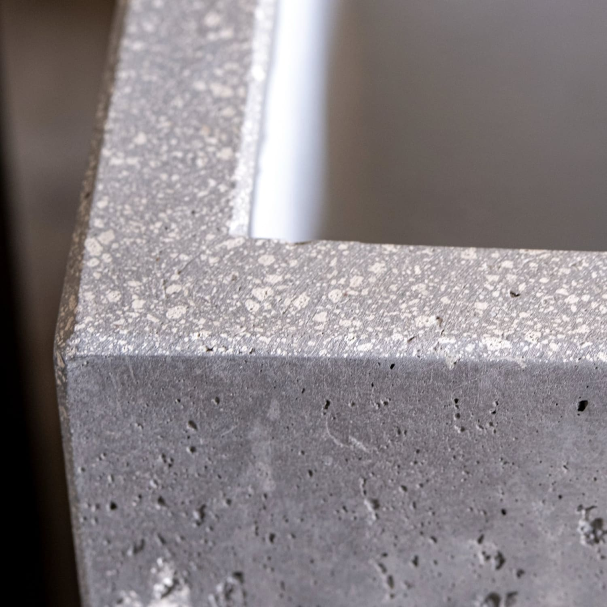 - Premium pigmented concrete – colour is part of the material, so chips and scratches won’t reveal a different layer