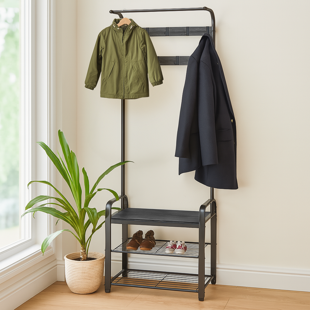 Keep home hallways neat and organised with this Free-Standing Steel Coat Rack Storage Unit from Harbour Housewares