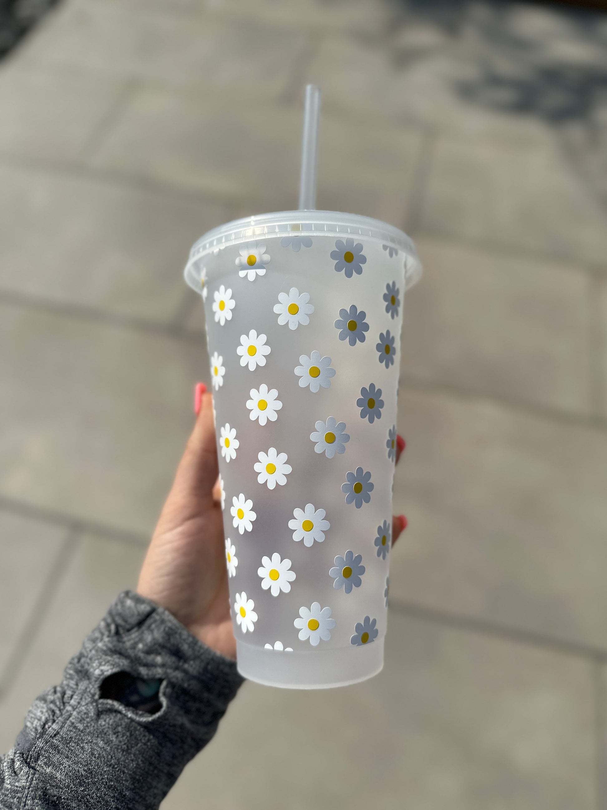 Daisy Tumbler Venti Cold Cup 24oz - With Straw - (Name Can Be Added)