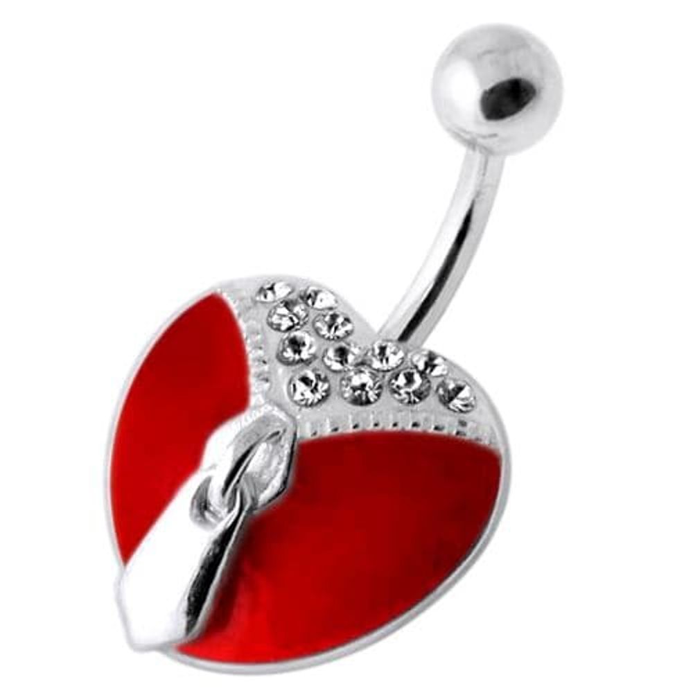 Dangling Zip Colorful Resin Heart Navel Belly Bar