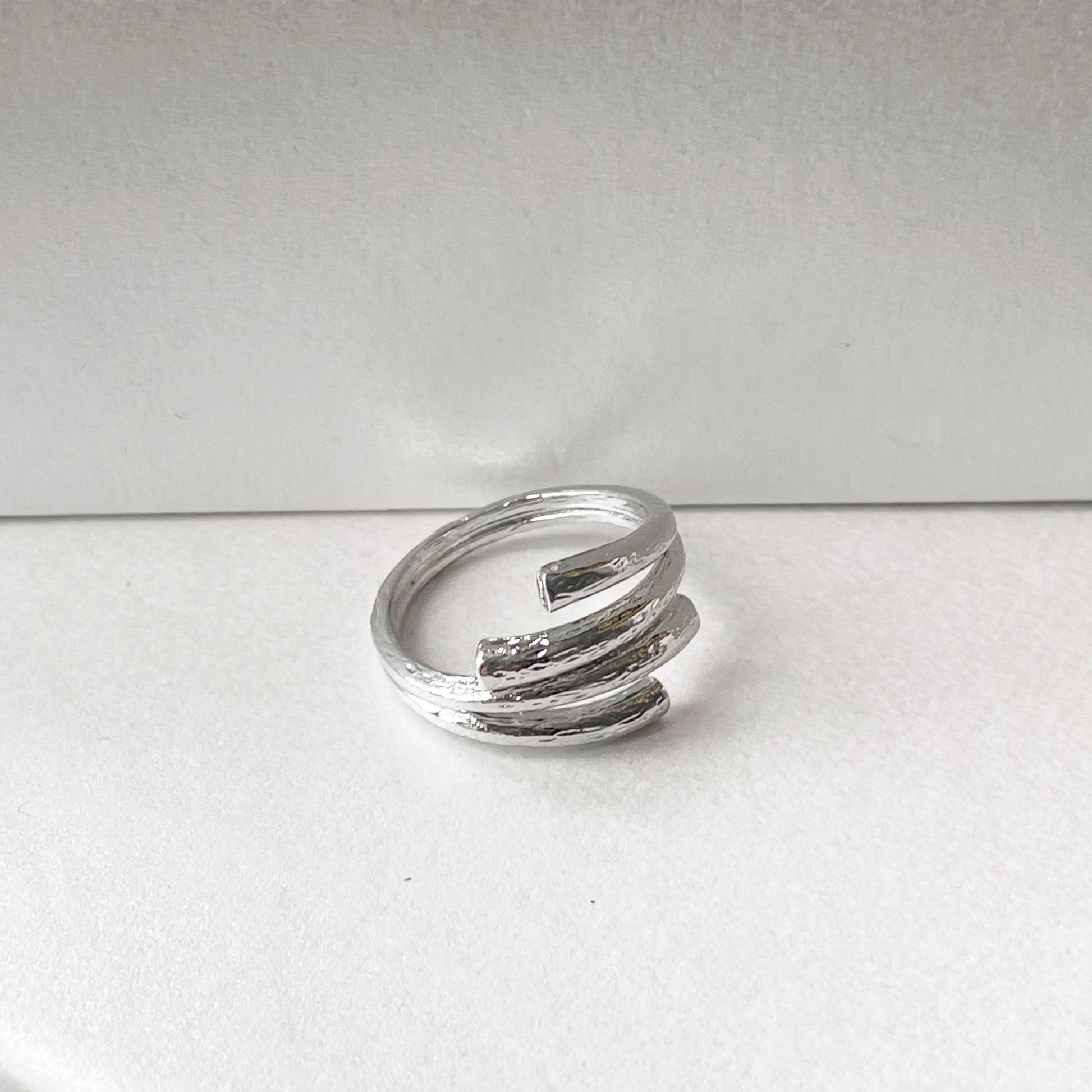 A textured modern wraparound silver ring is a stylish piece of jewellery that has a contemporary design with a unique texture and a sleek, metallic finish. The ring wraps around the finger, creating a dynamic and interesting look that complements any outfit.