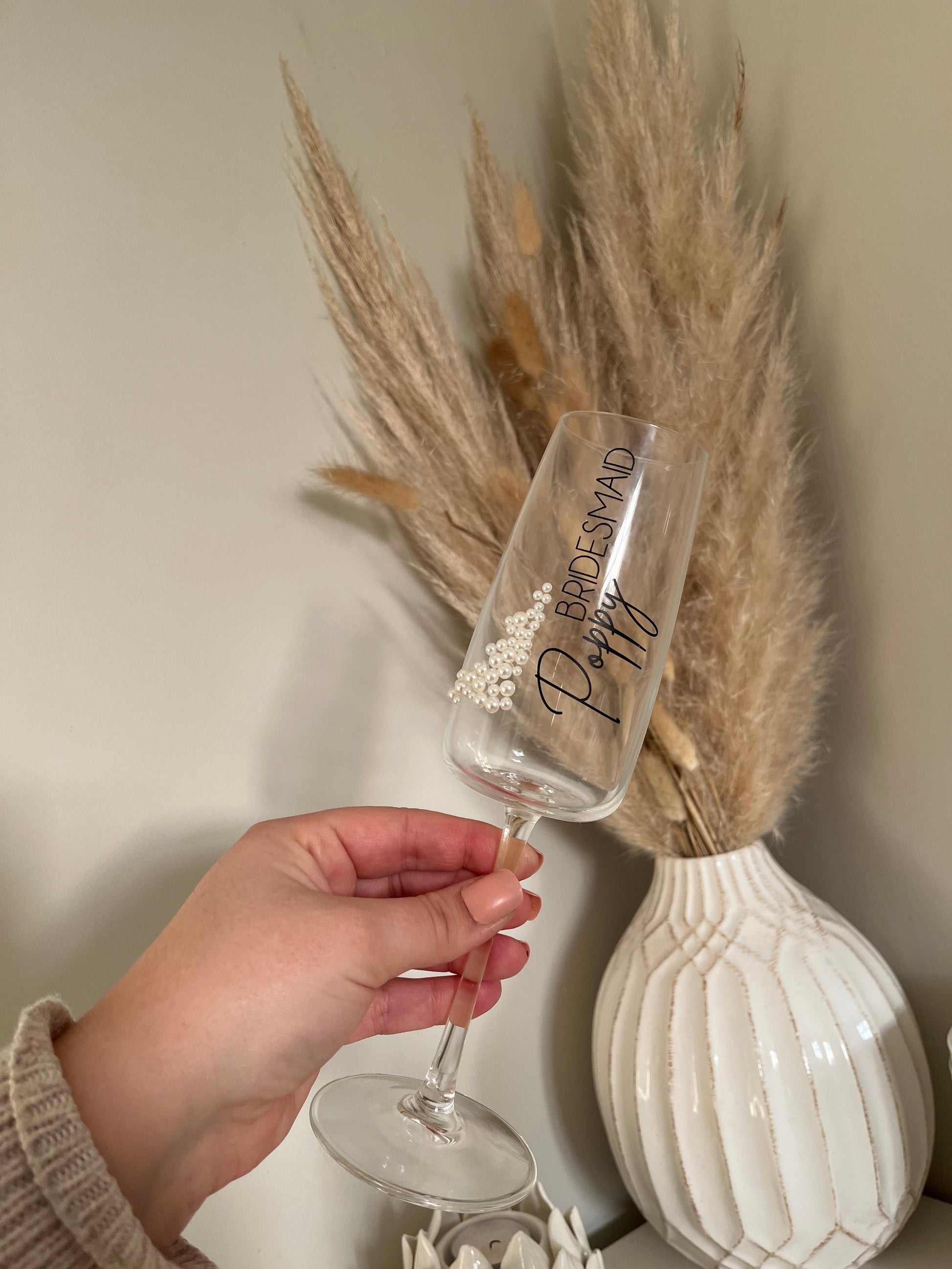DIY Personalised Wedding Fancy Font - Bride Bridesmaid Maid Of Honour Champagne Flute Decals - Roles & Names Sticker -