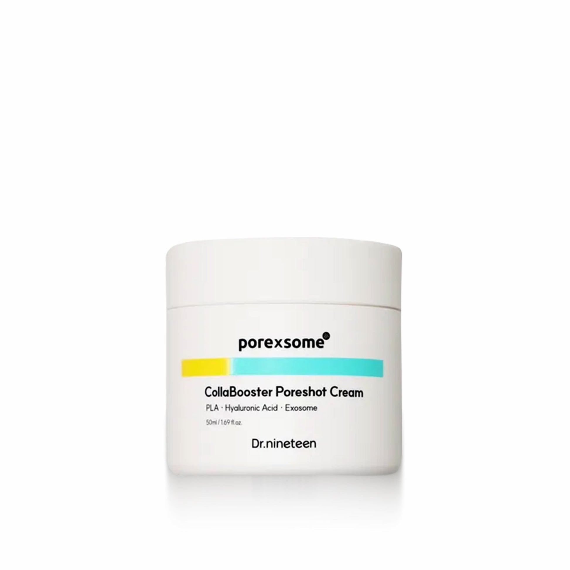 Boost your skin’s elasticity and hydration with DR NINETEEN PoreXsome Collabooster Poreshot Cream. This advanced formula combines nano-sized Poly Lactic Acid (PLA) to stimulate collagen production, Pore Exosome for a pore-tightening effect, and 12 types of Hyaluronic Acid to deliver deep, layered hydration up to 20 skin layers. Enriched with CCF Capsules, Ceramide NP, and Aloe Extract, it strengthens the skin barrier, soothes sensitive skin, and promotes a smooth, radiant, and plump complexion.